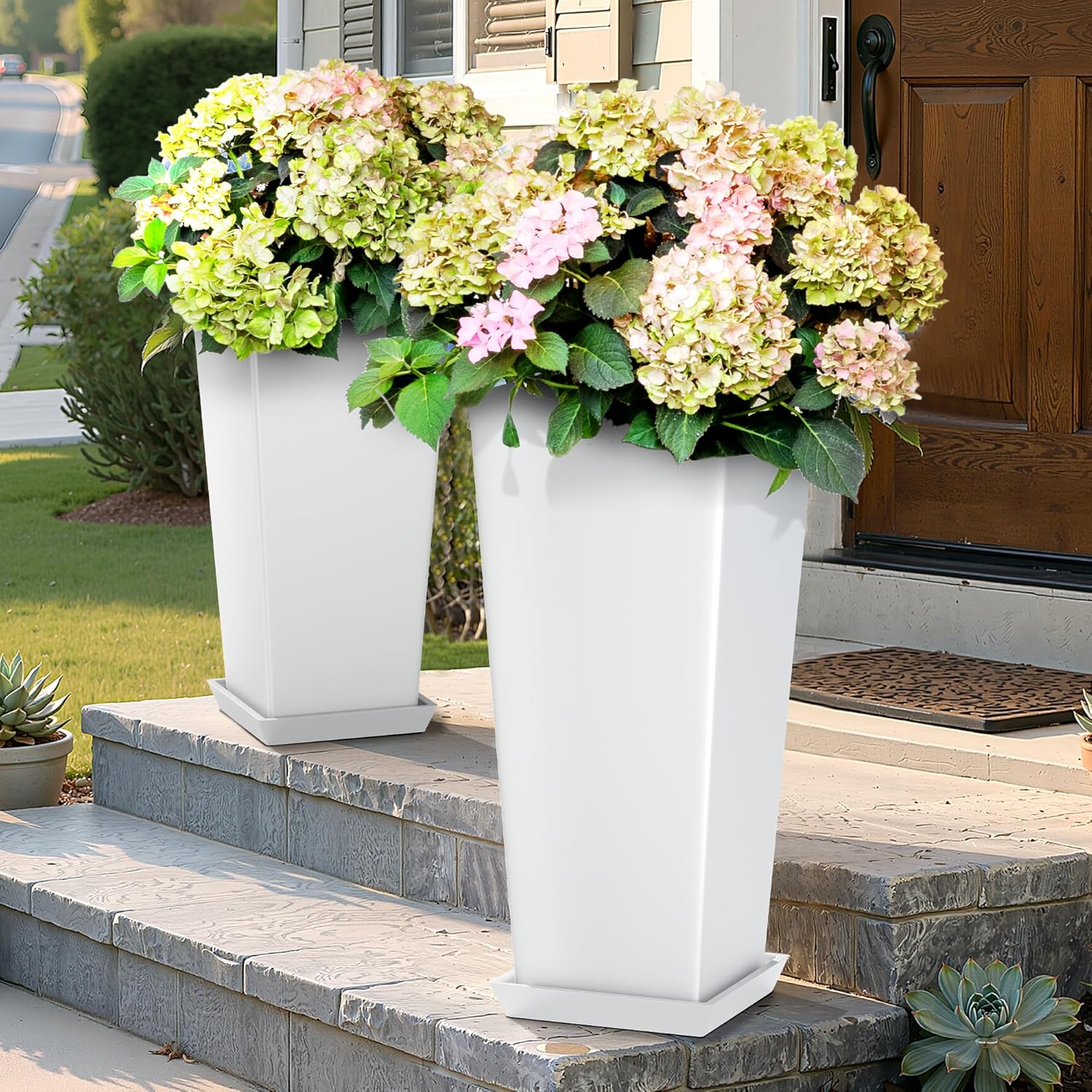 - Smart Drainage with Bonus Tray System: Each tall outdoor planter includes a custom-fit drainage tray to promote proper water flow and air circulation, helping to prevent root rot and keep your plants healthy. This makes these planters a great solution for your porch, patio, or any indoor space.