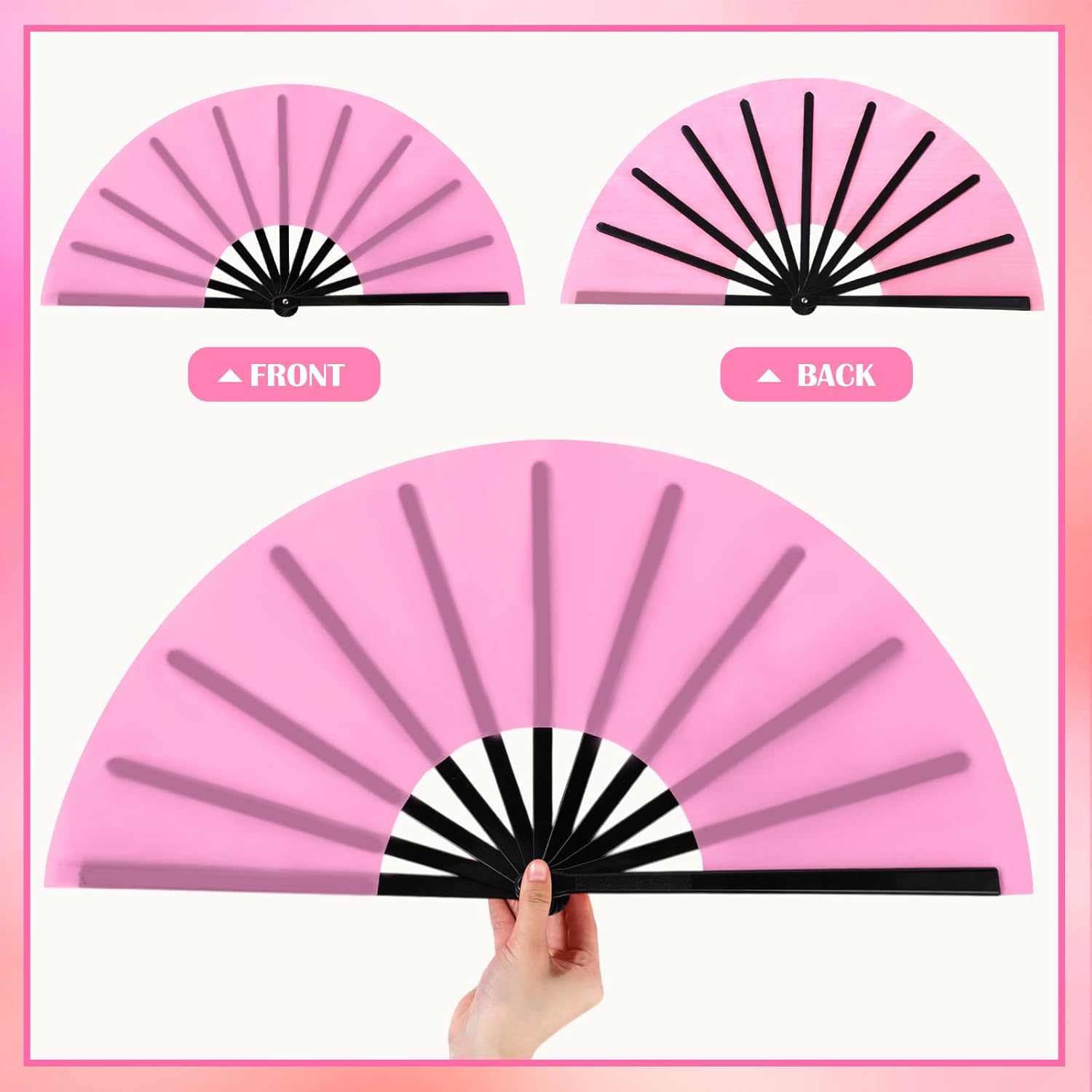 Maitys 4 Packs Large Clap Fans for Line Dancing Large Chinese Folding Hand Fans for Men and Women, Festival, Tai Ji, Kungfu, Martial Art, Gifts (Pink)