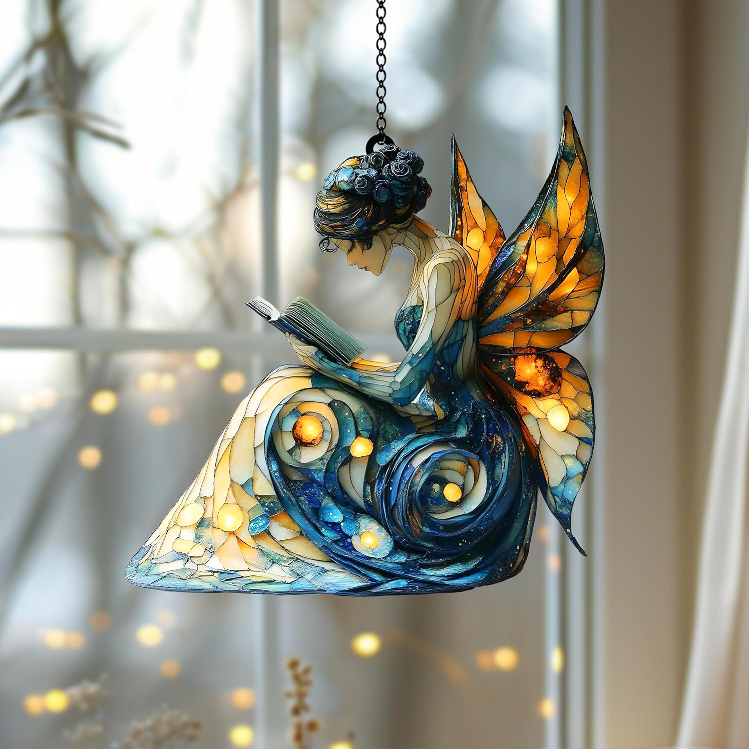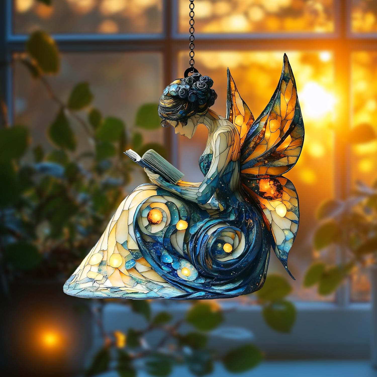 Butterfly Fairy Reading Book Acrylic Suncatcher Ornament Window Hanging Book Lover Gift Fairy Garden Decor
