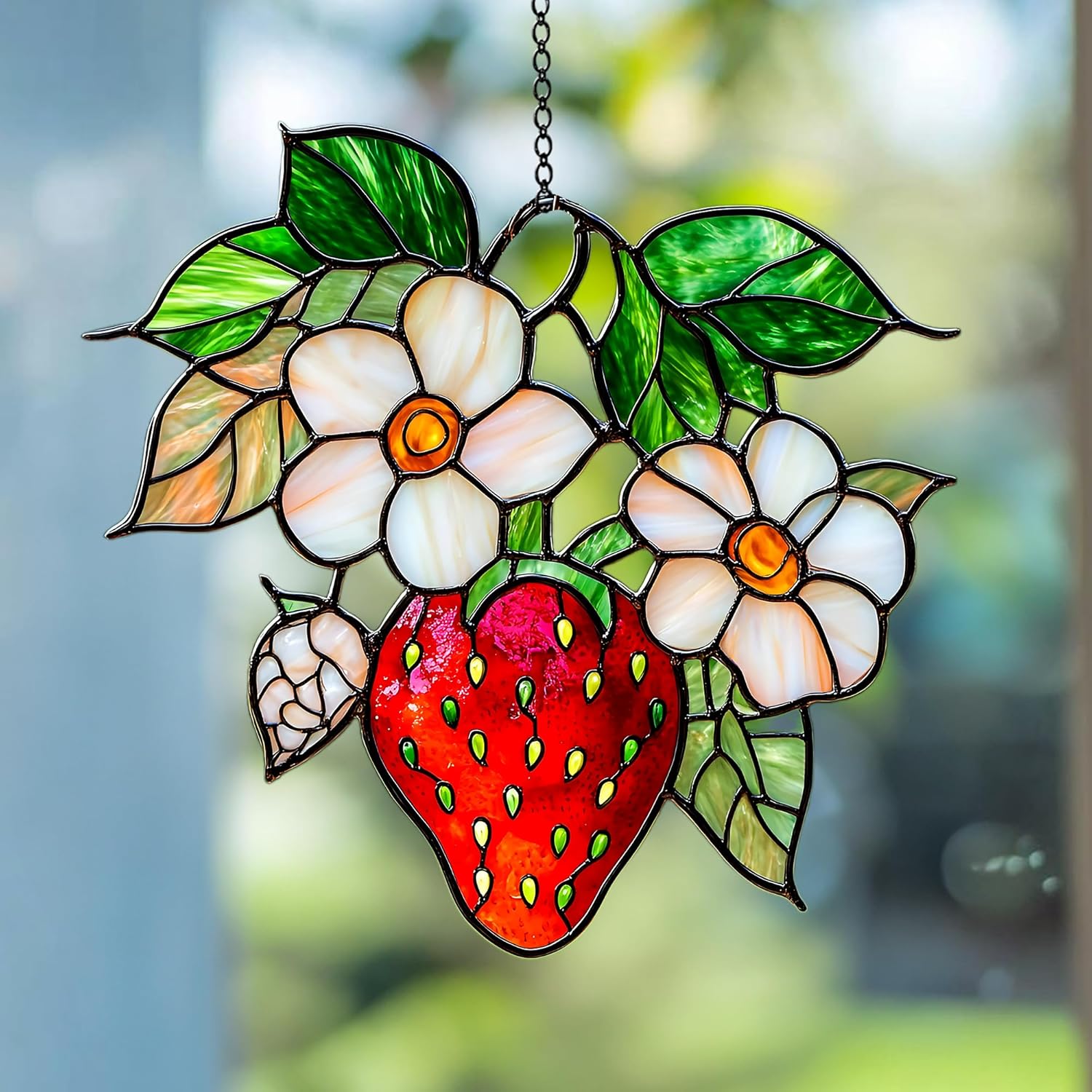 Strawberry Branch Acrylic Suncatcher Window Hanging Floral Home Decor Nature Lover Housewarming Gift