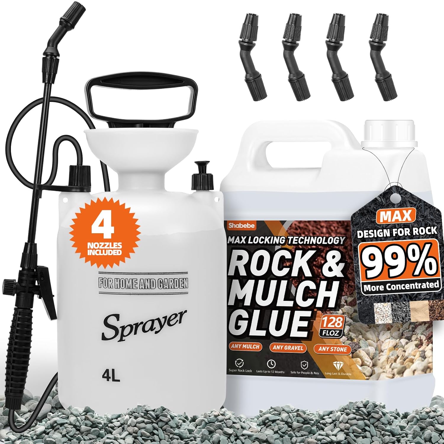 - 【All-in-One Kit 】:(1Gallon Rock Glue+1Gallon Sprayer)Comes with landscape rock glue gallon+ a heavy-duty sprayer bundle. This is the ultimate rock glue with sprayer for landscape glue—no more leaks or flimsy bottles. No fuss—Simple as mix, spray, and bond. Effortlessly locks gravel, stones, and pebbles in place