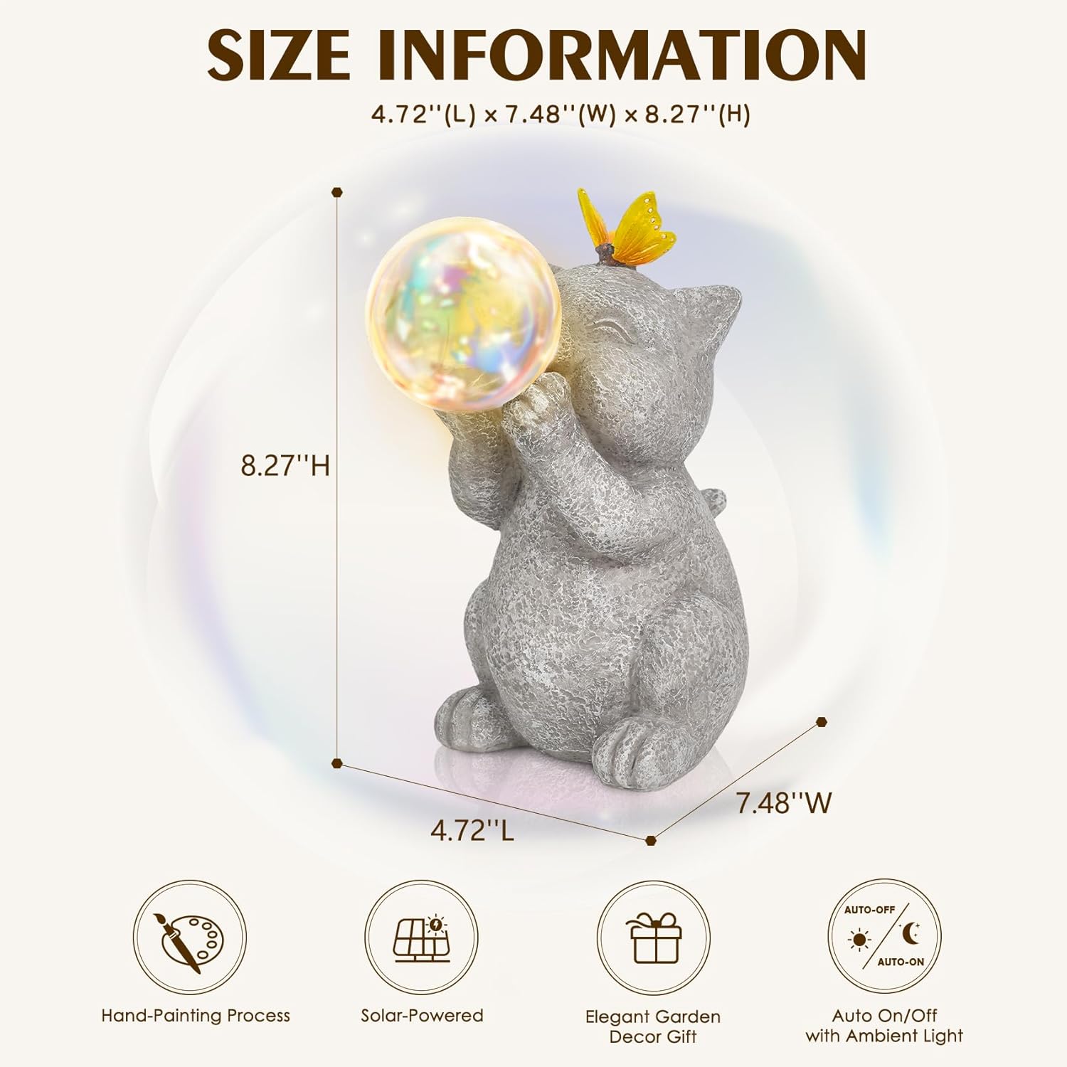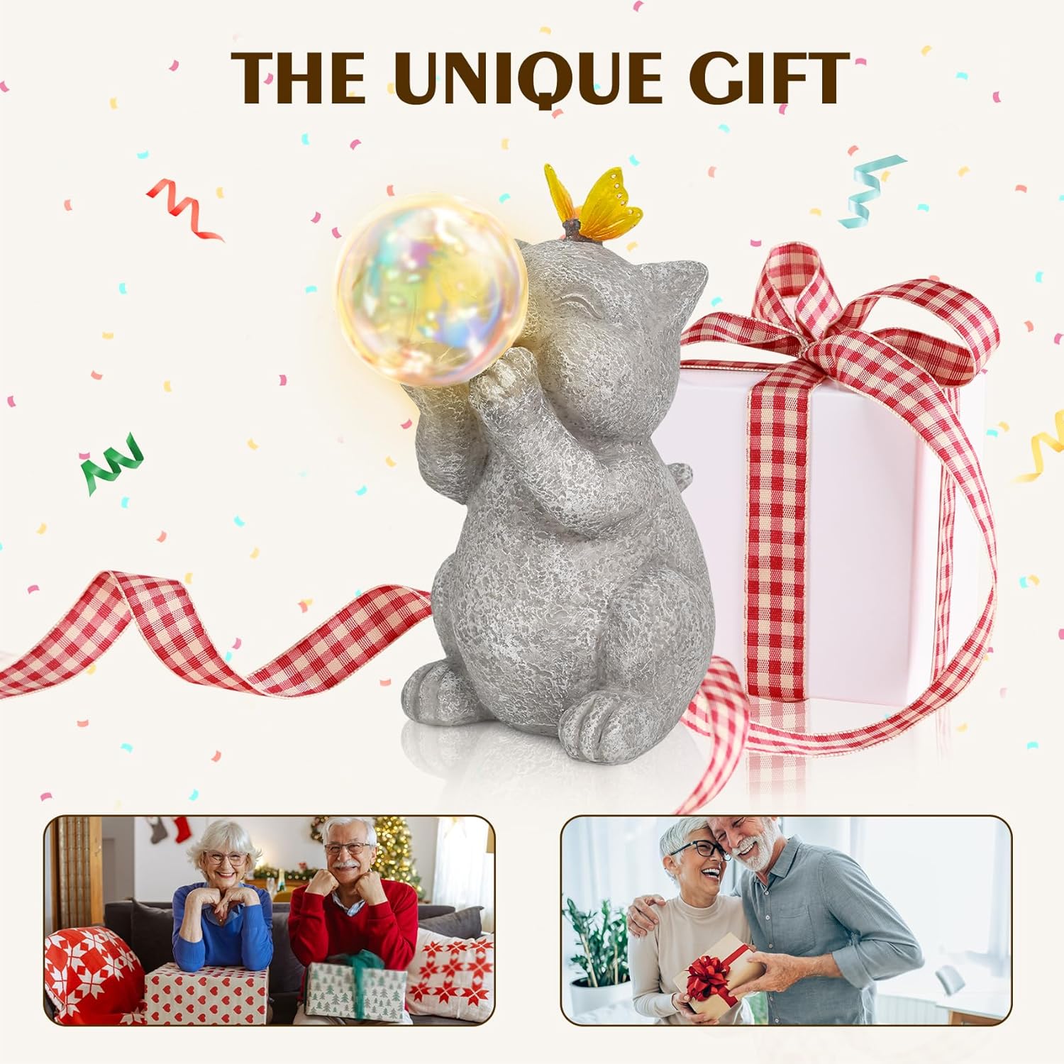 MININOVA Solar Garden Cat Statue, Cat Lover Gifts, Outdoor Bubble Cat Figurines Decor for Outside Yard Patio Lawn, for Housewarming and Birthdays for Mom Women