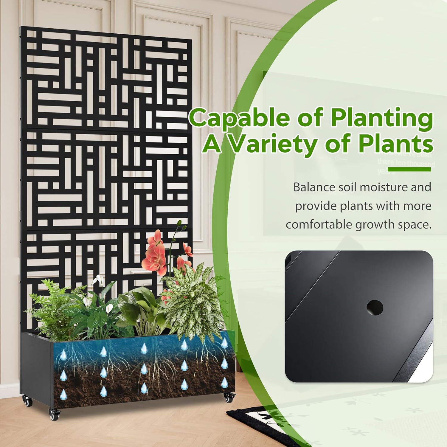 Metal Planter Box with Trellis,71”Raised Garden Bed with Trellis Privacy Screen and Drainage.Wheeled for Patio Flexibility,Perfect for Climbing Veggies/Flowers.DIY-Friendly Design
