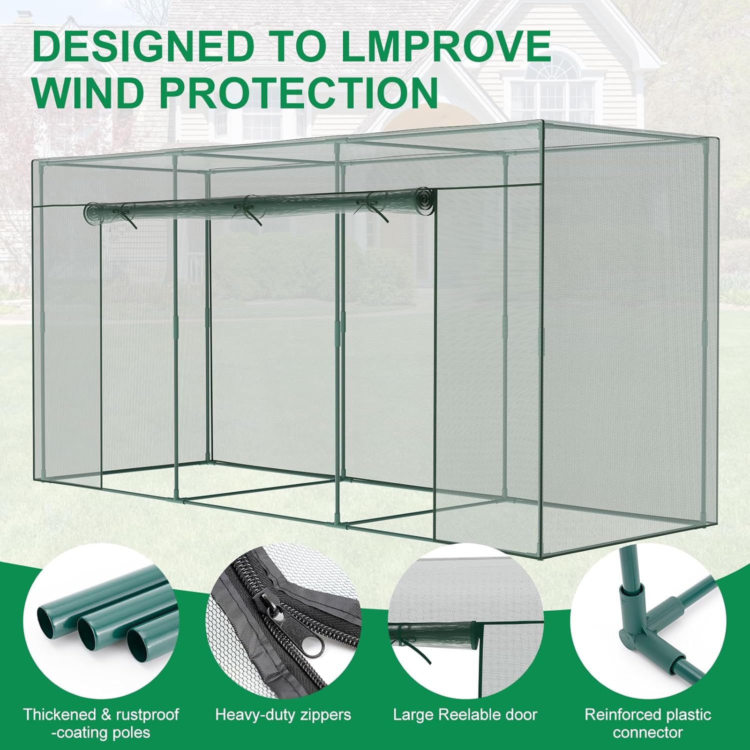 - Large Spacious Design: With a dimension of 142"L x 48"Wx 71"H Our crop cage for garden offers a large size to ensure that your plants have enough space to grow strong. The plant cage with mesh cover is lightweight, easy to assemble, and easy to disassemble and store at the end of the season