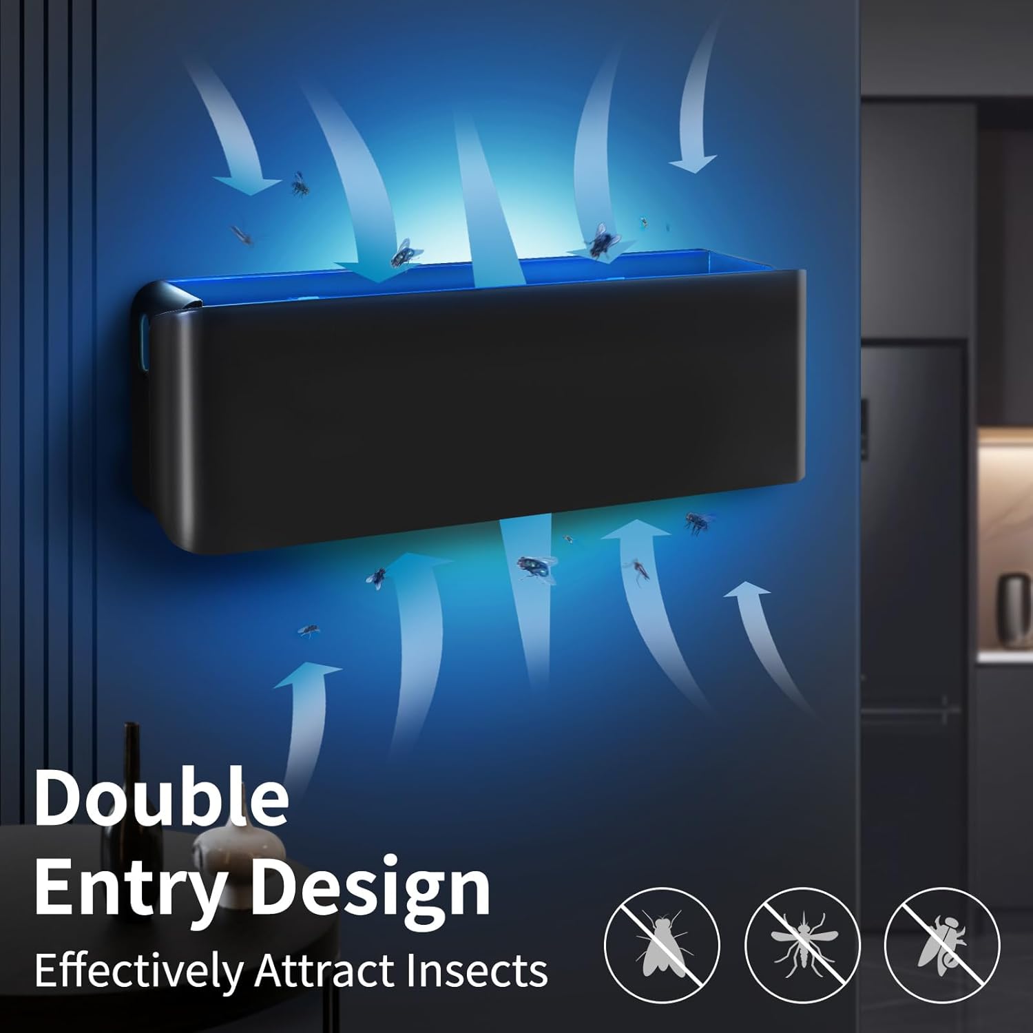 - Optimal Indoor Placement: Perfect for kitchens, restaurants, schools, and workplaces. Install 5–6 feet off the ground (mosquitoes’ preferred flight height) to cover 800+ sq. ft.. Tip: Place away from competing light sources, doors, or windows. If possible, let it be the only light on at night, so there are no other lights to attract the insects.