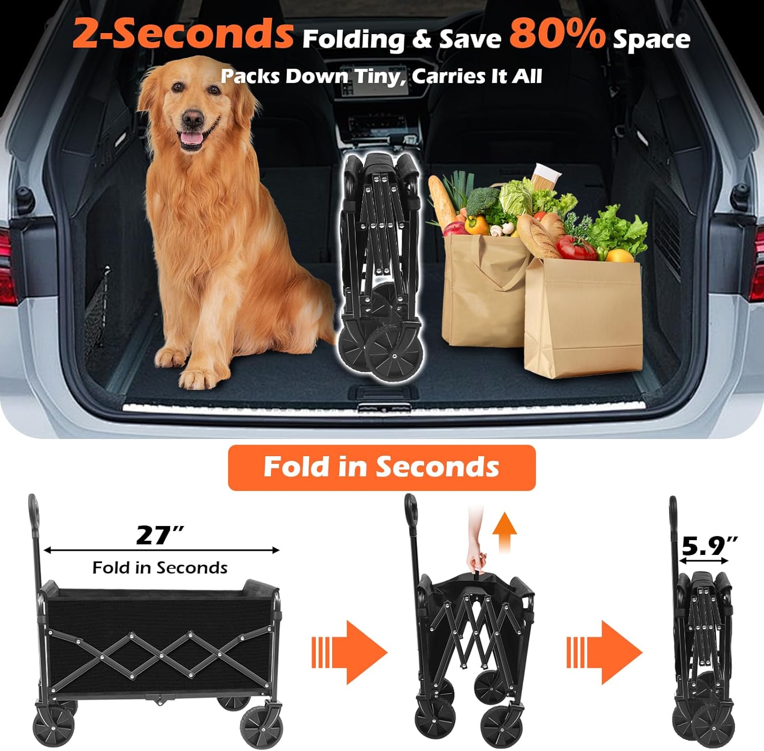 - Collapsible Wagons Carts Foldable: This collapsible wagon opens into a full-size foldable wagon cart with wheels in seconds and folds flat just as fast for compact storage. Perfect as a wagon cart with wheels foldable for beach trips, groceries, or camping trips, it doubles as a small foldable wagon for apartment living. A sturdy yet lightweight cart with wheels, this folding wagon cart with wheels is always ready. Every home benefits from wagons carts foldable for daily use, travel, or outdoor fun