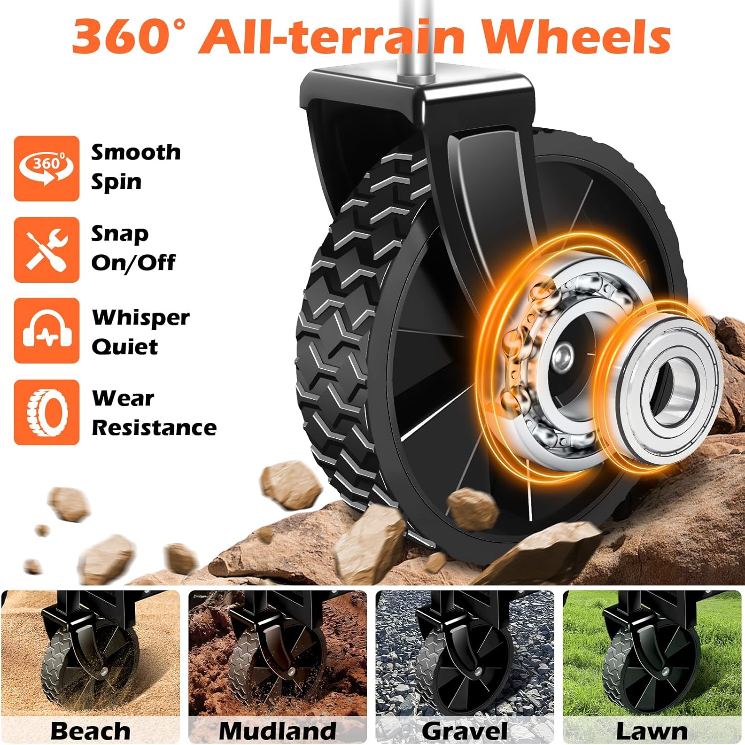 - All Terrain Wagon: Our folding wagon cart with wheels features 360° swivel wheels for smooth movement on sand, gravel, or grass. This all terrain wagon handles bumpy roads and uneven paths with ease, making it a reliable folding wagon with wheels for camping or sports. With a stable frame, this collapsible cart with wheels works as an all terrain wagons carts foldable solution for families or adventurers. Durable, versatile, and dependable, this fold up wagon ensures easy hauling everywhere