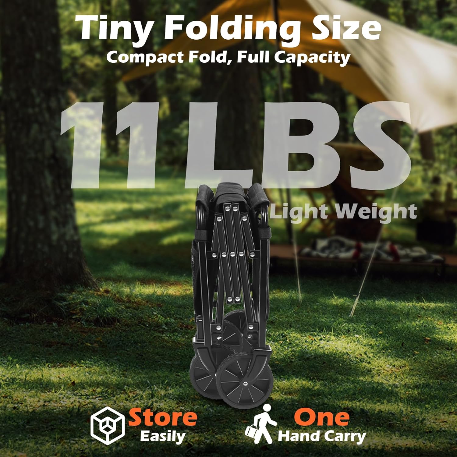 - Compact & Portable: Weighing just 11 lbs, this small foldable wagon folds down to 5.9"L x 17.3"W x 18.1"H for compact storage in closets, trunks, or campers. Expand it instantly into a spacious wagon cart with wheels foldable for groceries, laundry, or travel. This wagons carts foldable design is ideal for apartments, while the portable wagons collapsible style makes road trips and beach days easy. A collapsible foldable wagon that is lightweight yet strong, always ready when you need it