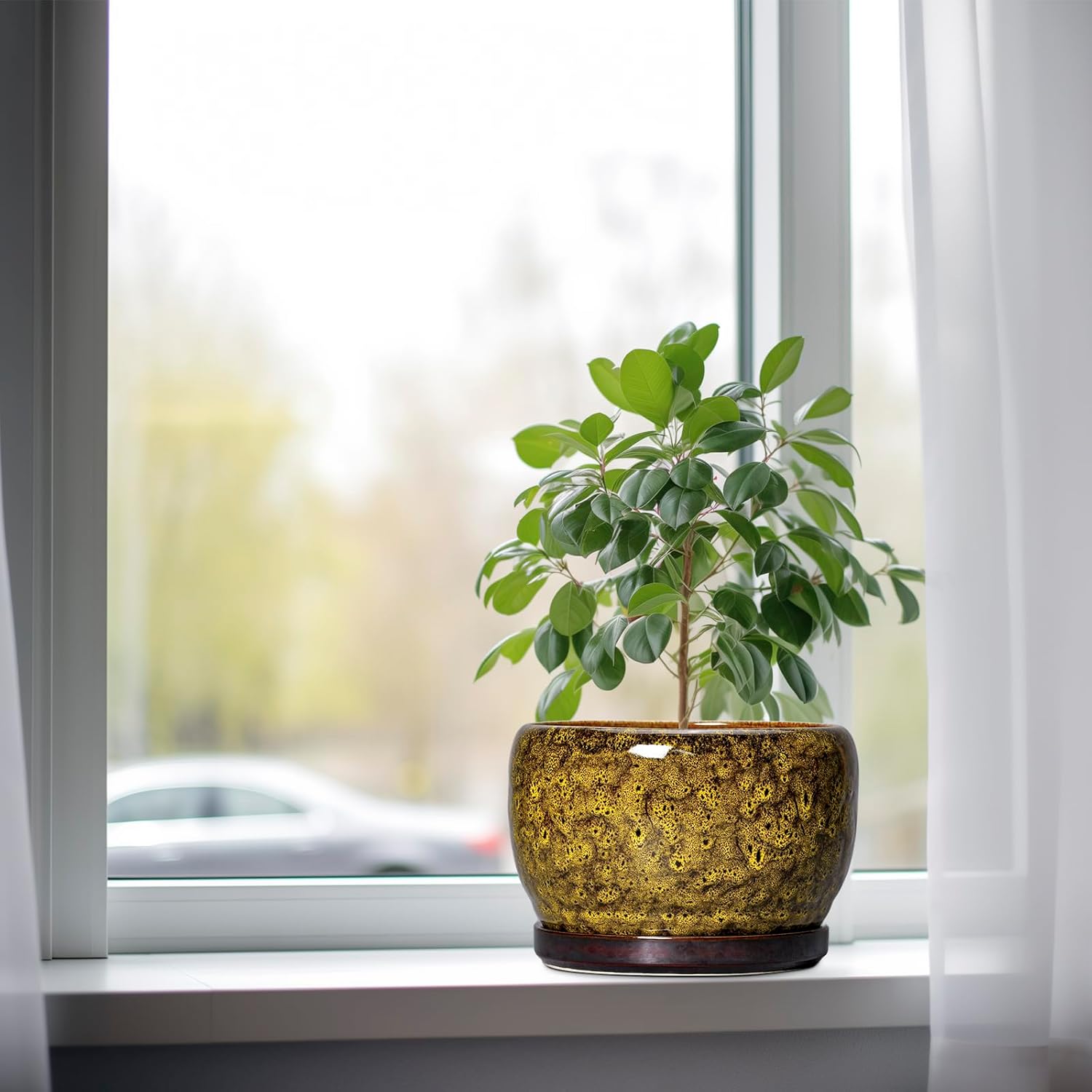 - Modern Design: Our ceramic planter features a beautiful and smooth yellow glazed finish, suitable for decorating your window, bedroom, table, book shelf, desk, home, house, patio, porch, balcony, office, garden and more
