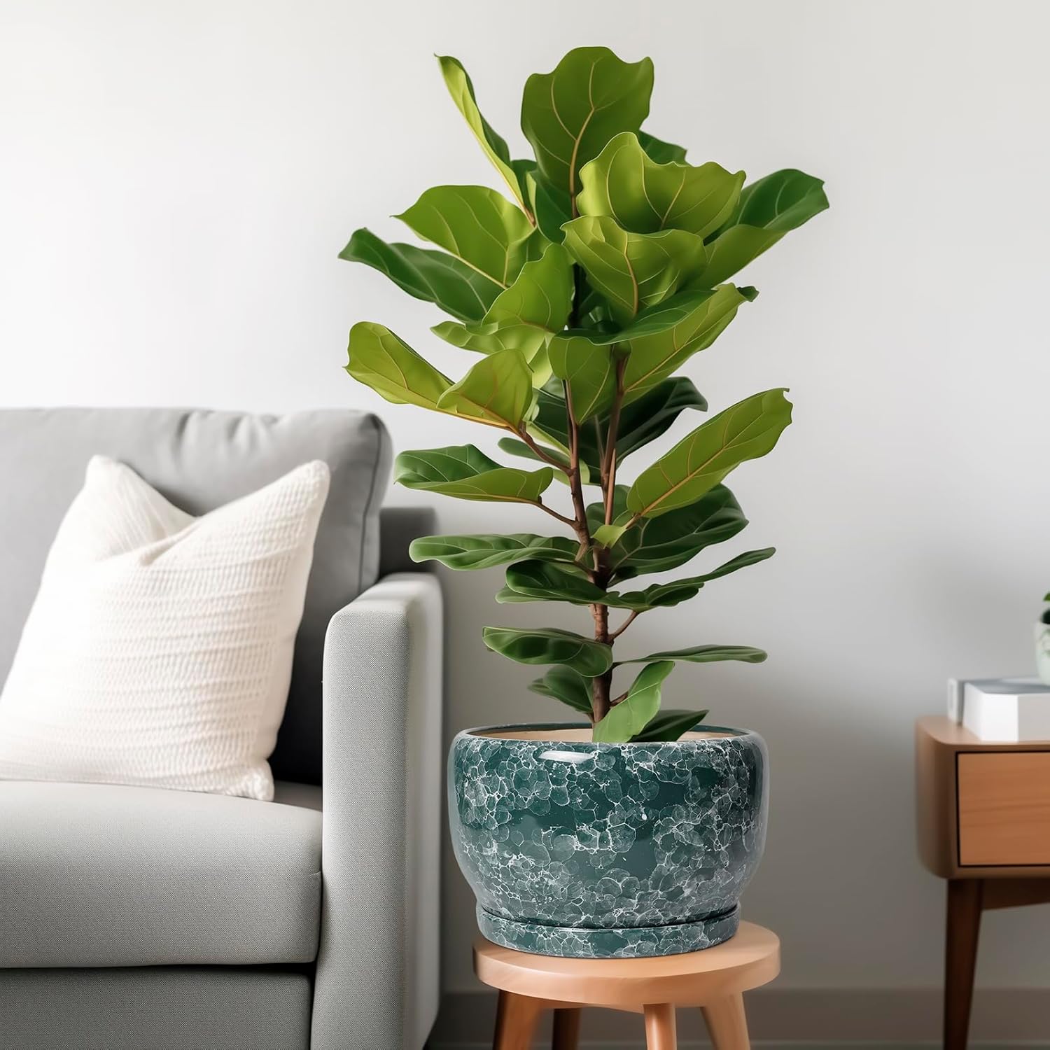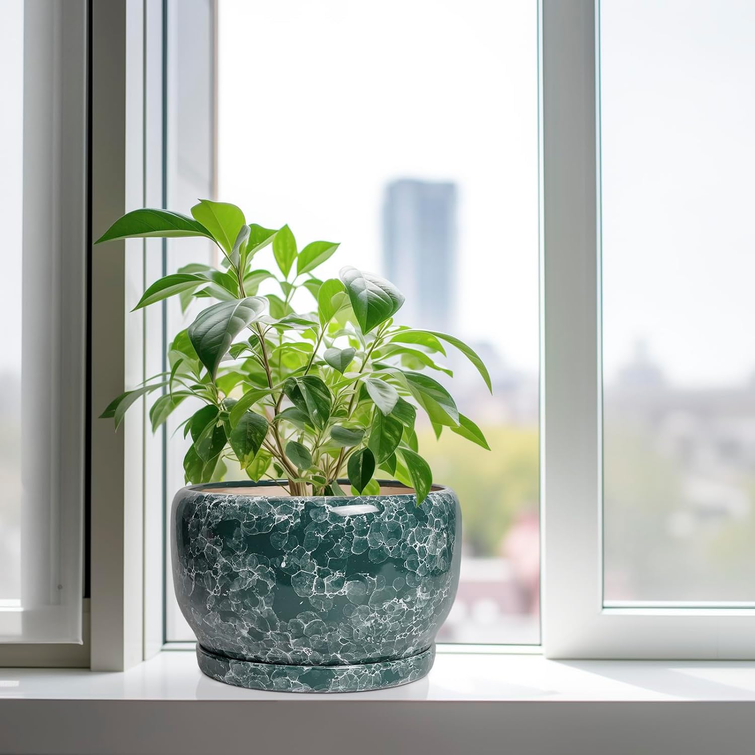 - Drainage Hole and Saucer: Plant pot indoor with drainage hole efficiently removes excess water, helping your plants thrive. The ceramic tray catches any overflow, so you can place the green plant pot anywhere with confidence