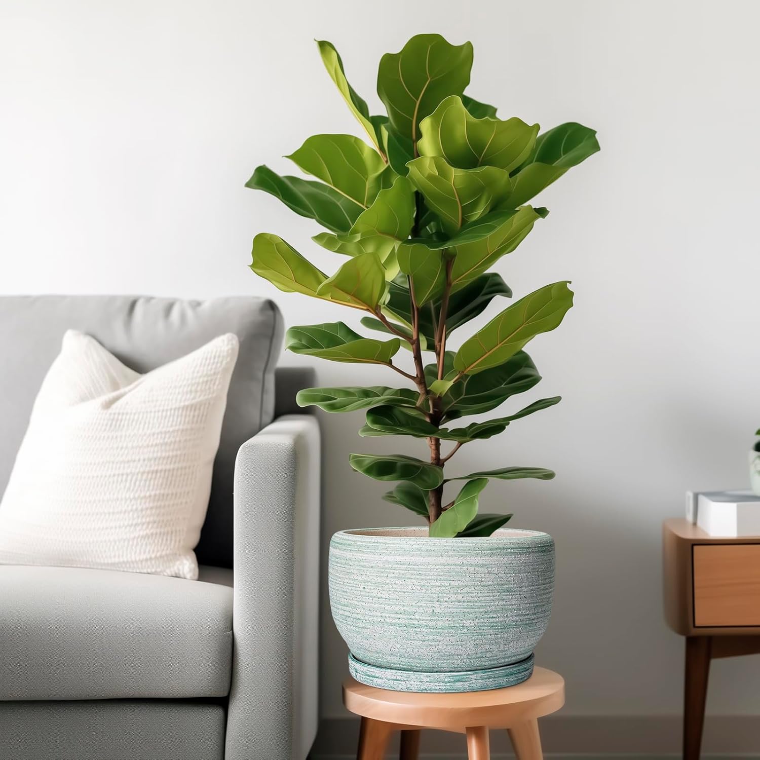 - Ideal Size: 10"D x 6.5"H, 10 inch plant pot come with a ceramic tray, drainage hole and mesh pad, plants not included
