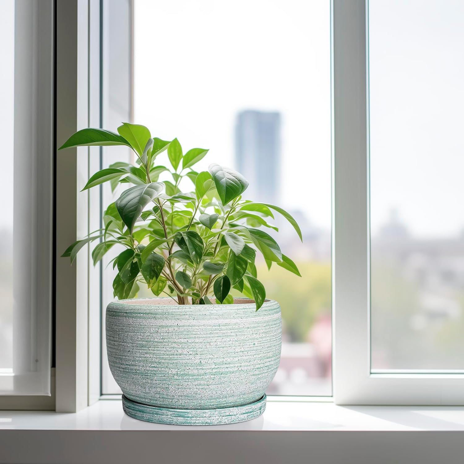 - Drainage Hole and Saucer: Plant pot indoor with drainage hole efficiently removes excess water, helping your plants thrive. The ceramic tray catches any overflow, so you can place the green plant pot anywhere with confidence