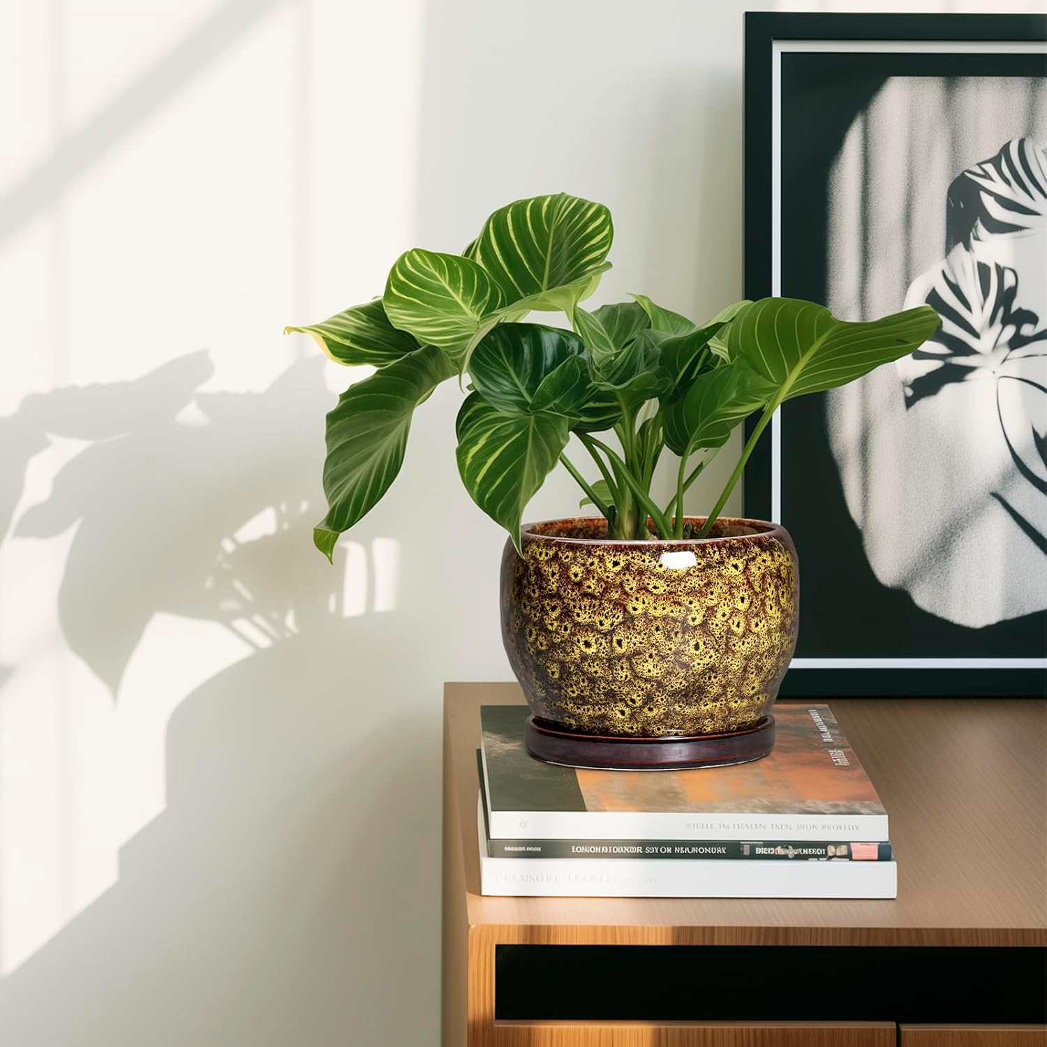 - Modern Design: Our ceramic planter features a beautiful and smooth yellow glazed finish, suitable for decorating your window, bedroom, table, book shelf, desk, home, house, patio, porch, balcony, office, garden and more