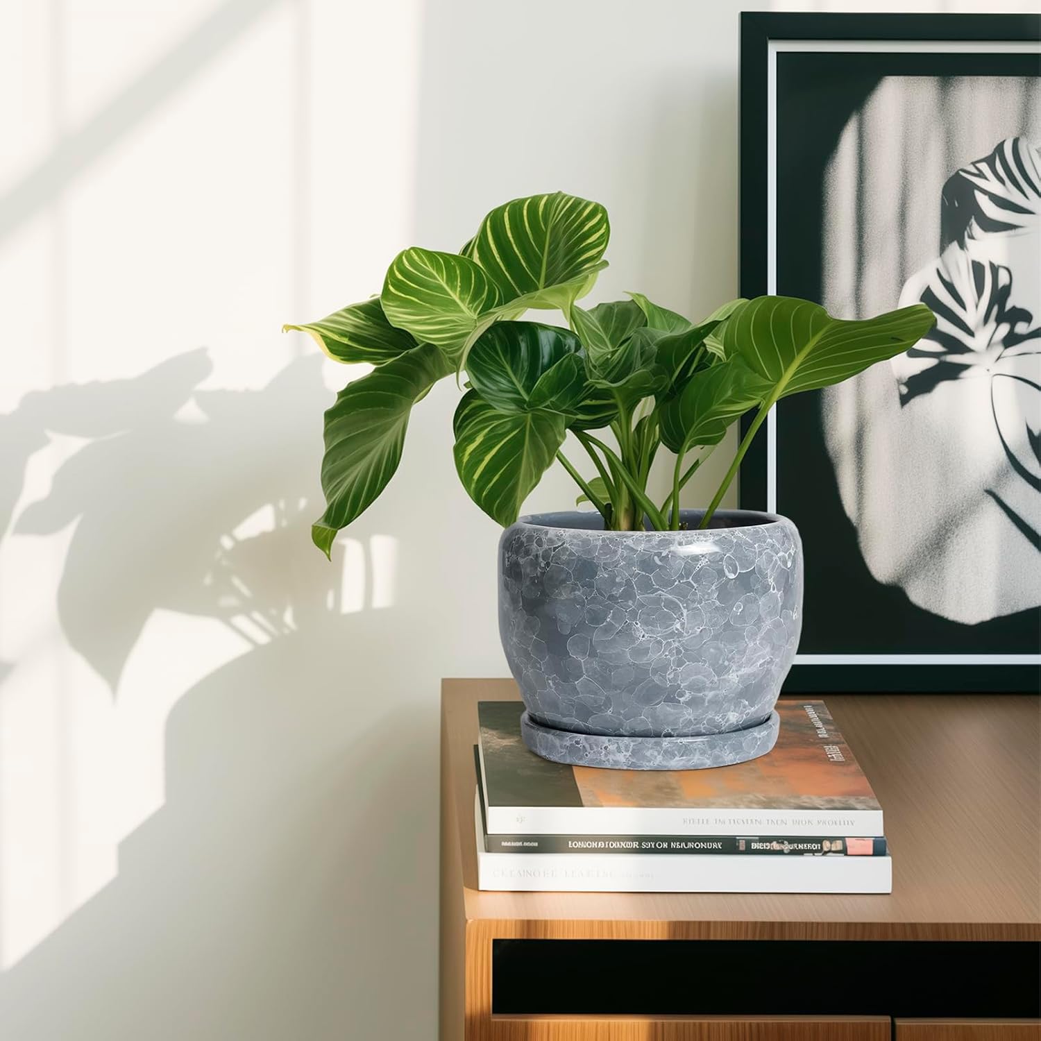 - Drainage Hole and Saucer: Plant pot indoor with drainage hole efficiently removes excess water, helping your plants thrive. The ceramic tray catches any overflow, so you can place the gray planter anywhere with confidence