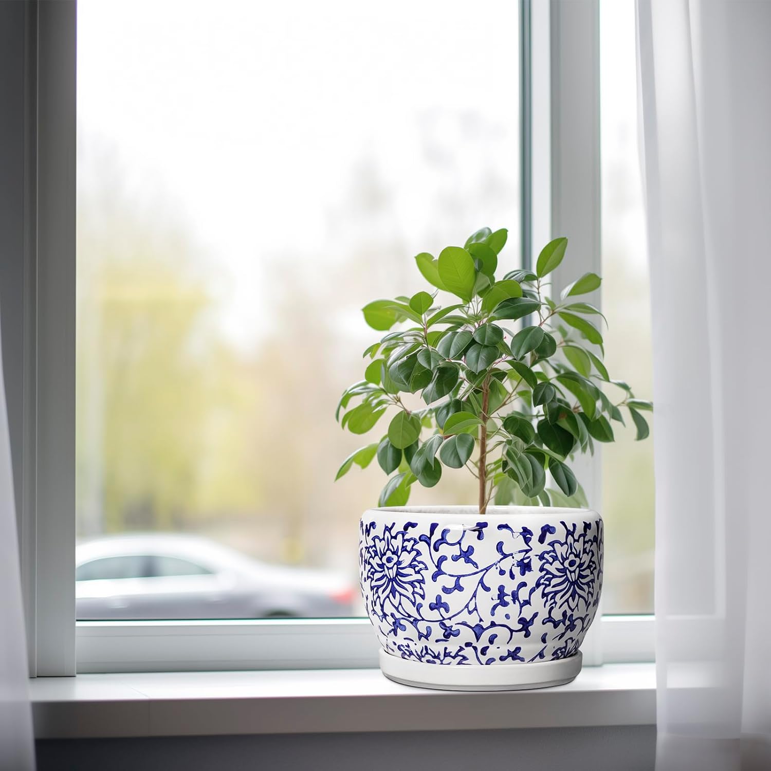 - Drainage Hole and Saucer: Plant pot indoor with drainage hole efficiently removes excess water, helping your plants thrive. The ceramic tray catches any overflow, so you can place the blue and white planter anywhere with confidence