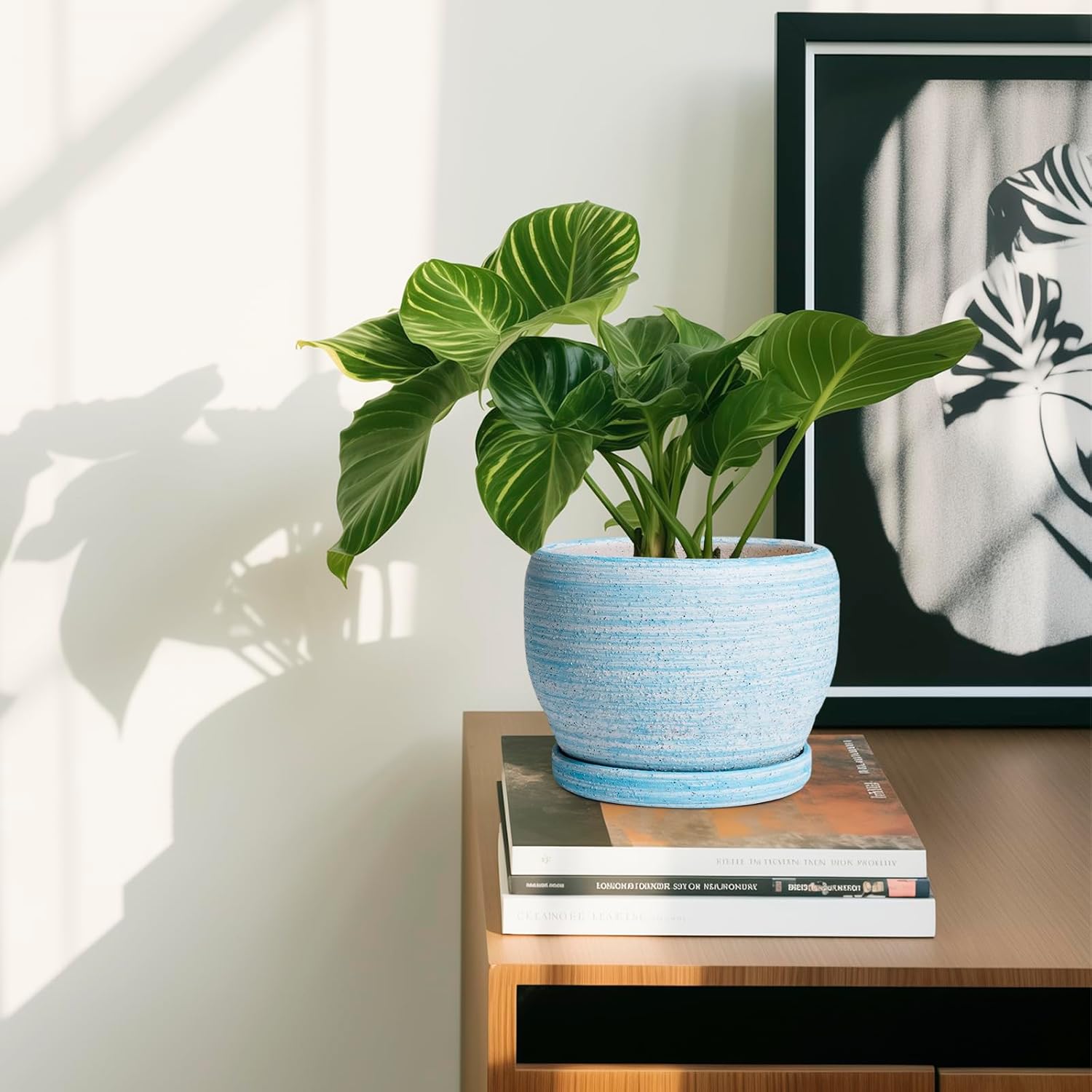 - Drainage Hole and Saucer: Plant pot indoor with drainage hole efficiently removes excess water, helping your plants thrive. The ceramic tray catches any overflow, so you can place the blue planter anywhere with confidence