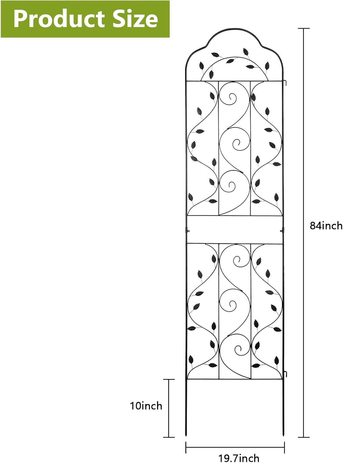 - 3. Versatile Use: Maximize functionality with 2 interlocking trellis (84"H each) – use as a vertical plant support for tomatoes and cucumbers, a decorative garden screen, or a sturdy fence border. The extended 10" ground stakes enhance stability, securing the trellis firmly in soil, planters, or raised beds.