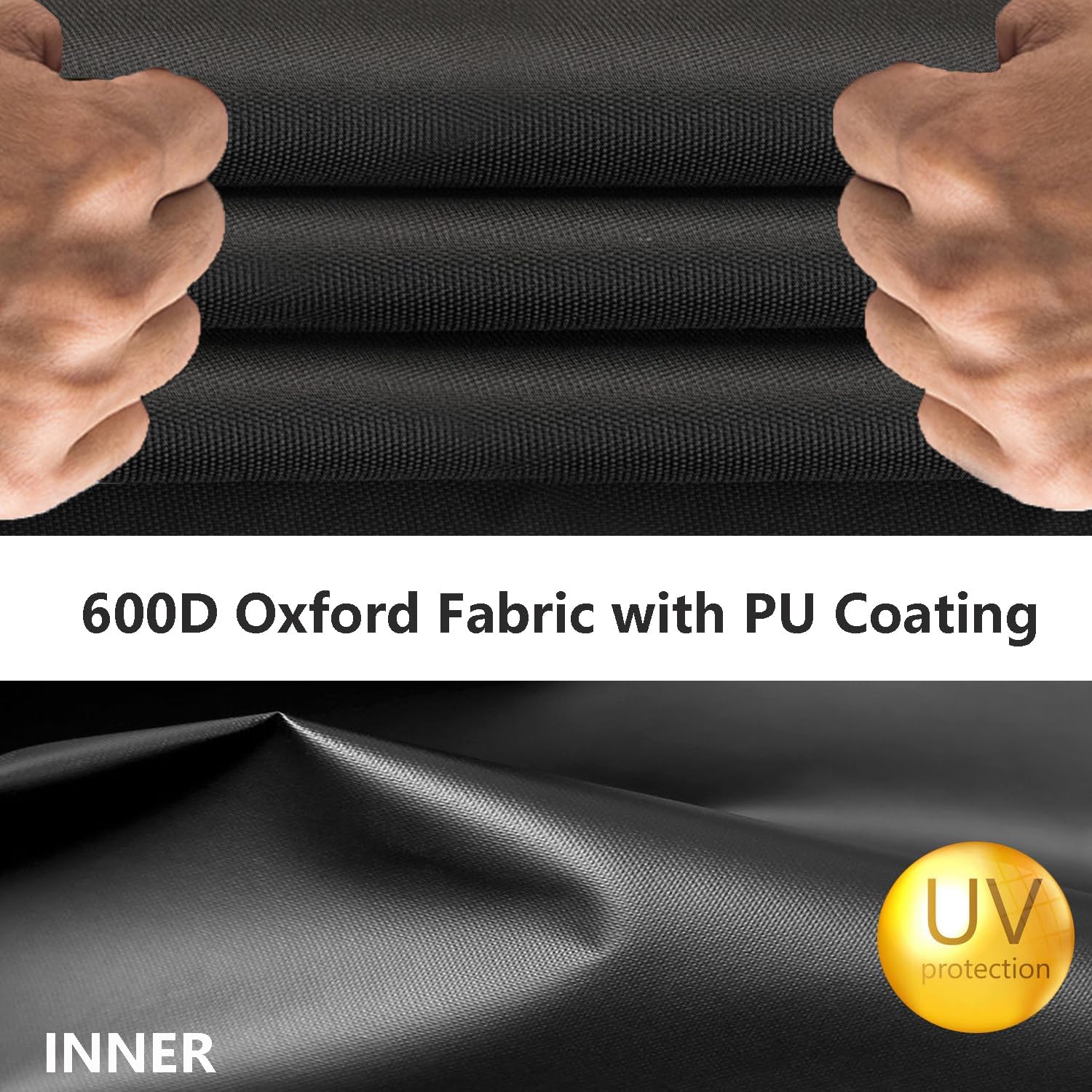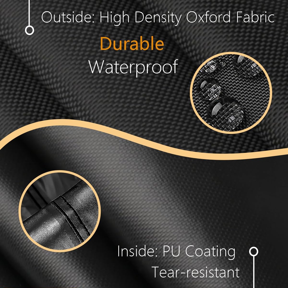 - Waterproof Material: Made of 4-layer thickened fabric, waterproof coating + 600D oxford fabric + Anti-UV coating + PU Coating, effectively keeps moisture out, tear-resistant and UV-resistant, It can withstand extreme endurance tests such as hail, storms and large amounts of water