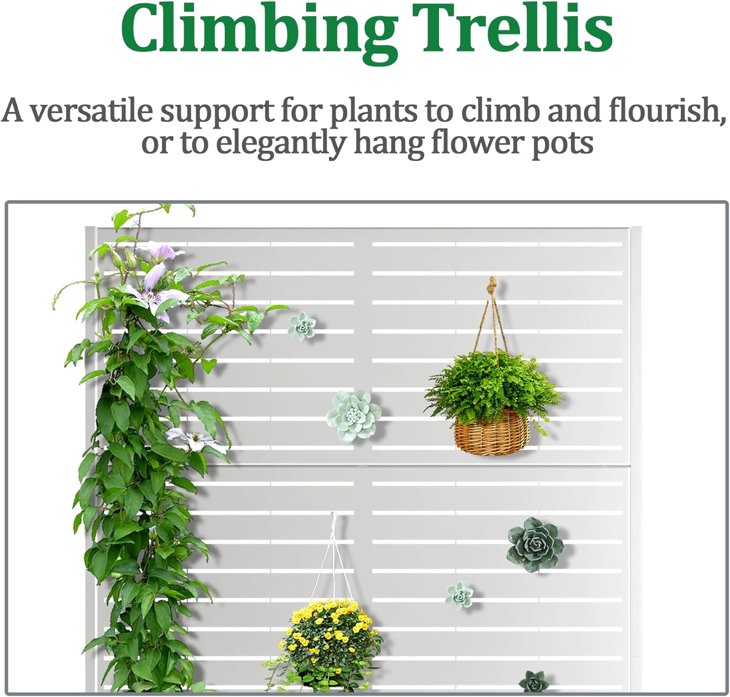 Metal Raised Garden Bed with Trellis, 2 in 1 Trellis with Planter Box & Privacy Screen for Climbing Plants, Vine, Outdoor Standing Flower Beds with Drainage Holes, 47" L x 16" W x 71" H, White