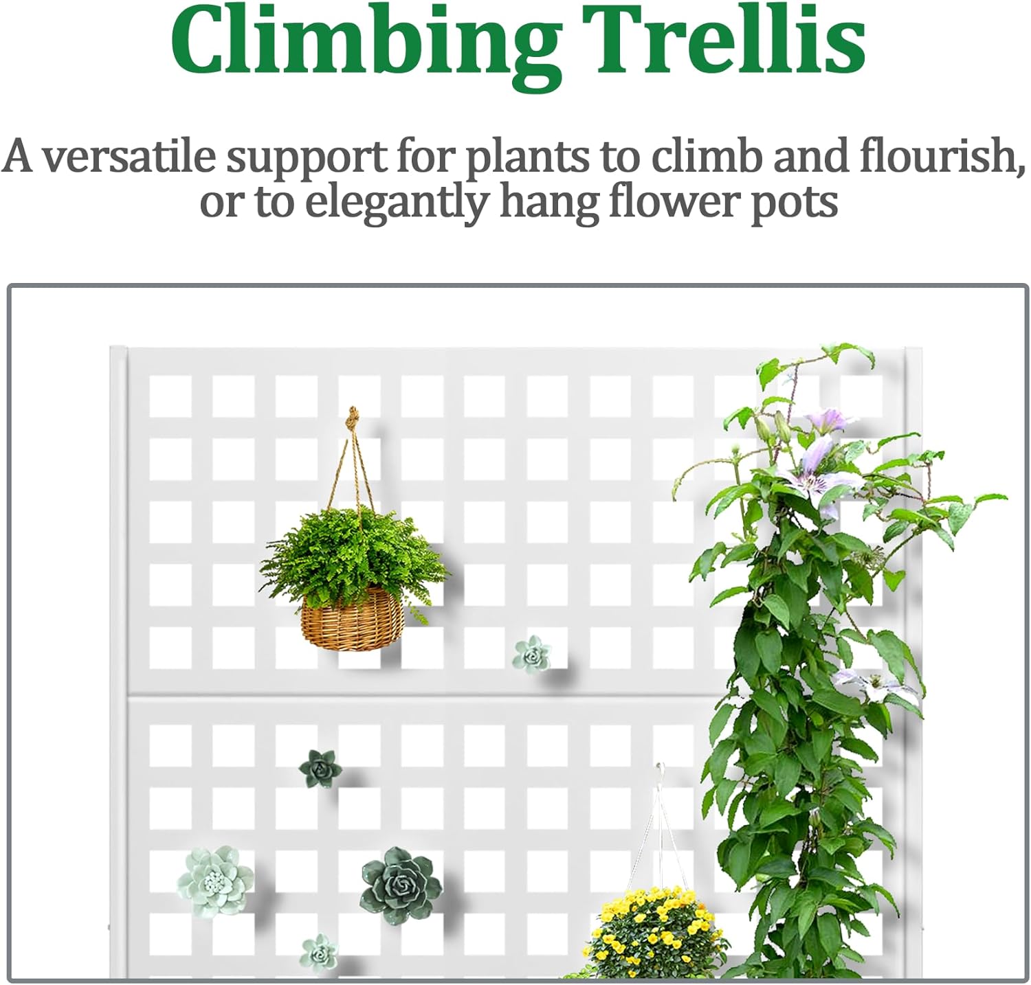 - Space-Saving Design: The planter box is combined with the trellis to offer a space-efficient and visually appealing gardening solution. The vertical design of the trellis optimizes planting space while preserving a compact footprint. The outdoor raised garden bed’s upright structure is perfect for those with limited space to create a charming garden on a terrace or in a small yard.
