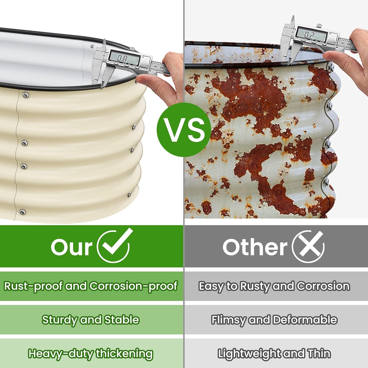 - Long-Lasting Quality:The garden beds are made of zinc aluminum-magnesium steel for durability. This advanced material is more resistant to corrosion and rust than traditional galvanized materials. Lasts 2-6 times longer than traditional galvanized raised beds, far longer than wood raised garden bed.