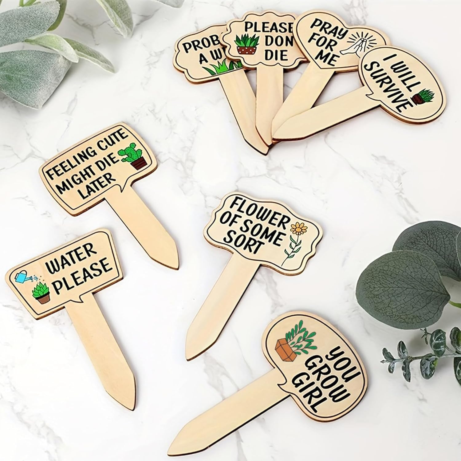- Package Includes : You will receive 15 pieces of wooden garden markers, which is printed with different funny words and patterns, cute and special, great for decorating plants in garden.