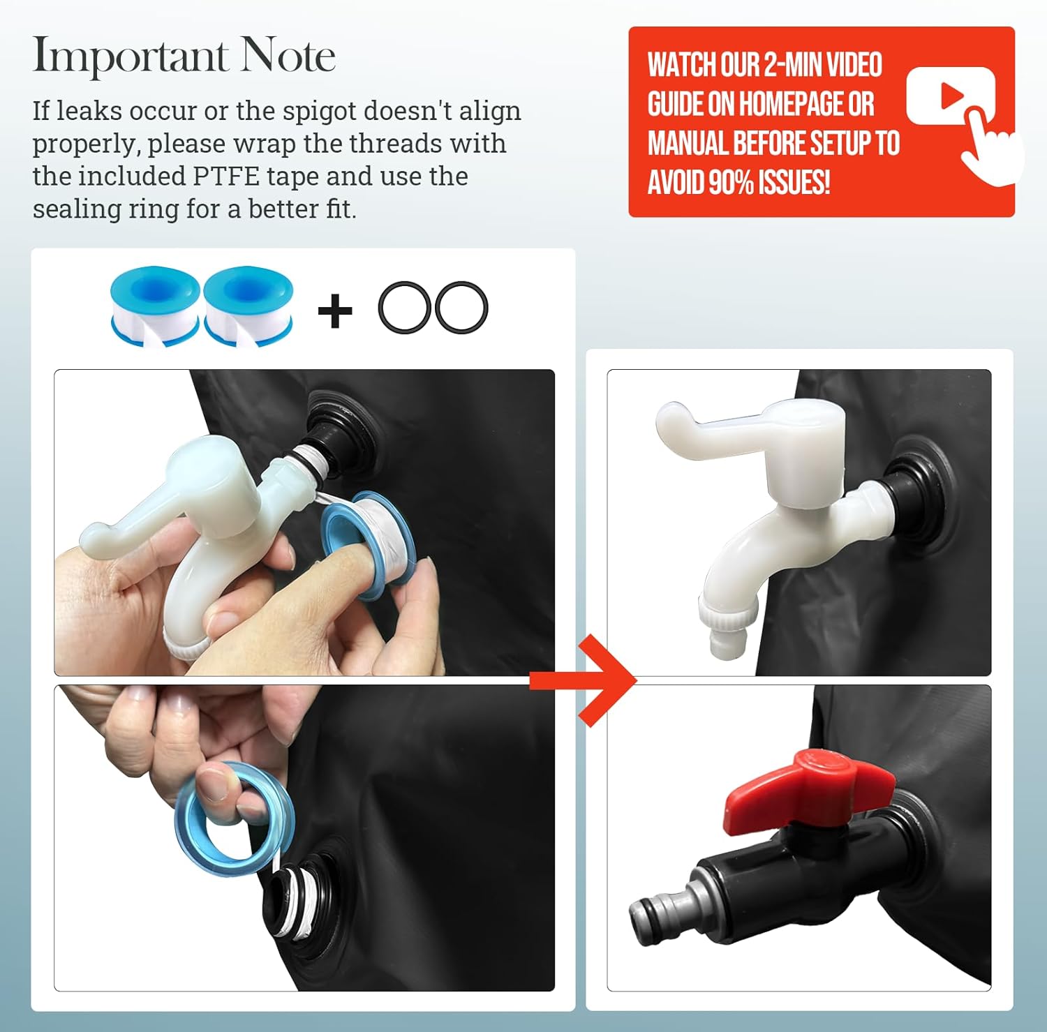 - 【Convenient & Easy to install】Thanks to the collapsible design, our rain barrel spigot kit can be stored in small places like cabinets or sheds when not in use. You can also put it in your car trunk for outdoor activities and farm irrigation, so you don't have to carry lots of heavy drinking water. Installation is easy and quick, with no special tools needed. Even first - time users in remote outdoor areas can set it up without trouble