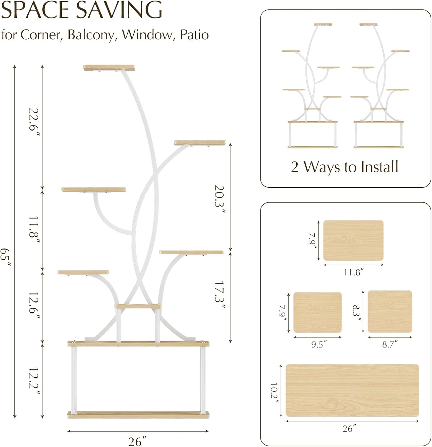 - 【8‑Tier, 64″ S‑Shaped Plant Stand】Tall plant stand 64‑inch S‑shaped features 8 tier for maximum vertical planting. Each tier holds up to 11 lbs, perfect for pots up to 10″ diameter. Elegant S‑shape design brings modern style and space‑saving functionality to any room.