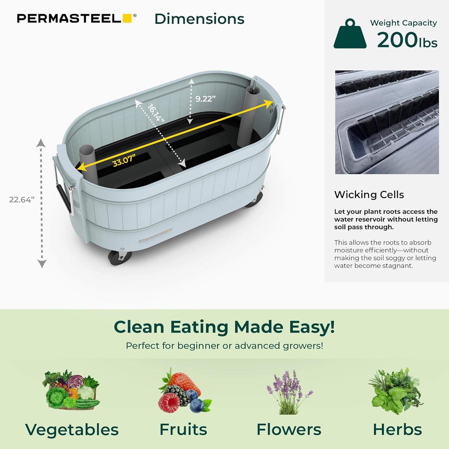 Permasteel Self-Watering Garden Bed, Rolling Planter for Vegetables, Flowers, Herbs, and Fruit, Outdoor Indoor, Caster Wheels, Blue