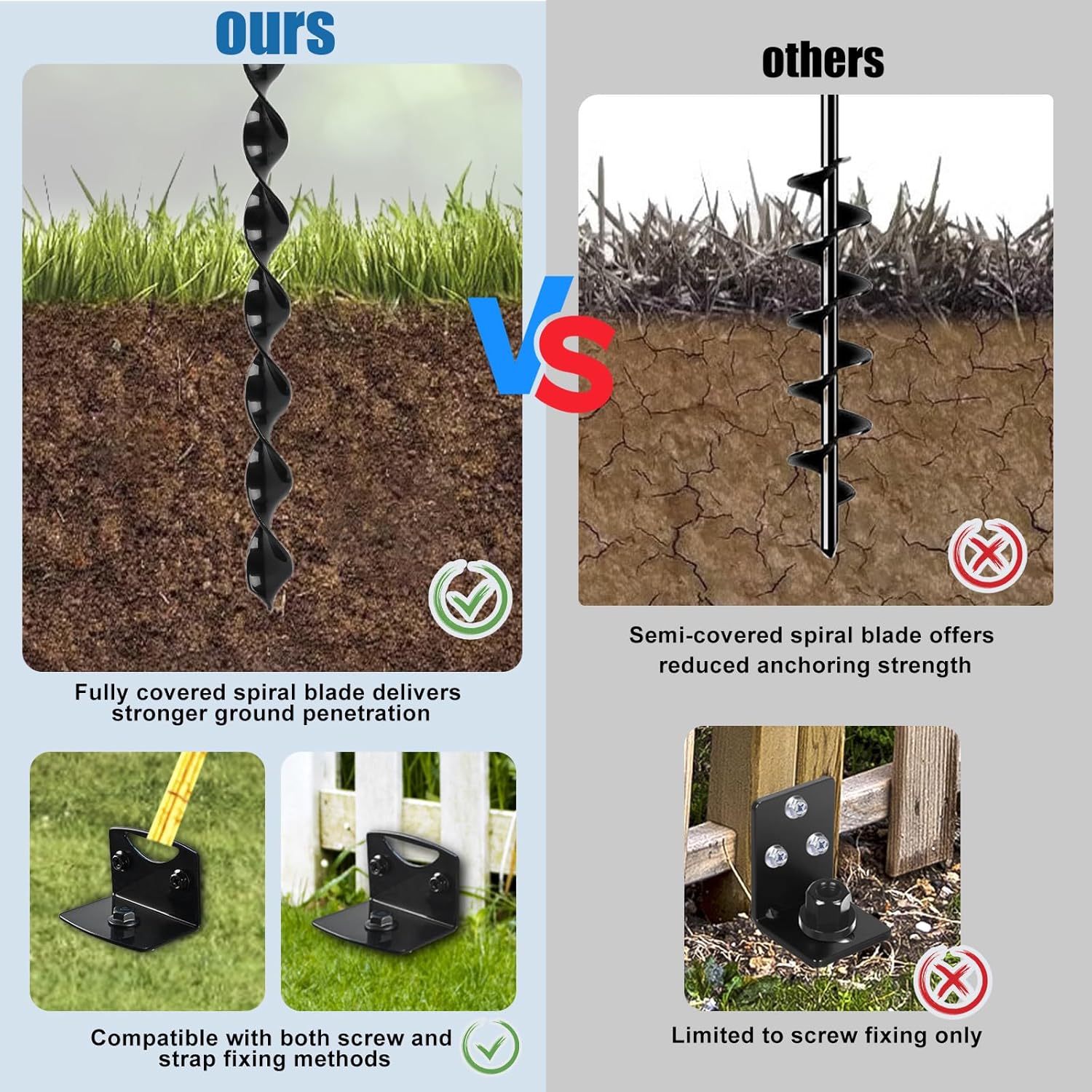 - 【Effortless Drill Installation】: The Swing Set Anchors includes a power nut driver and brackets—just attach the adapter to your drill for fast, labor-saving installation. Designed to work efficiently in various soil types, even compact or clay-heavy ground.