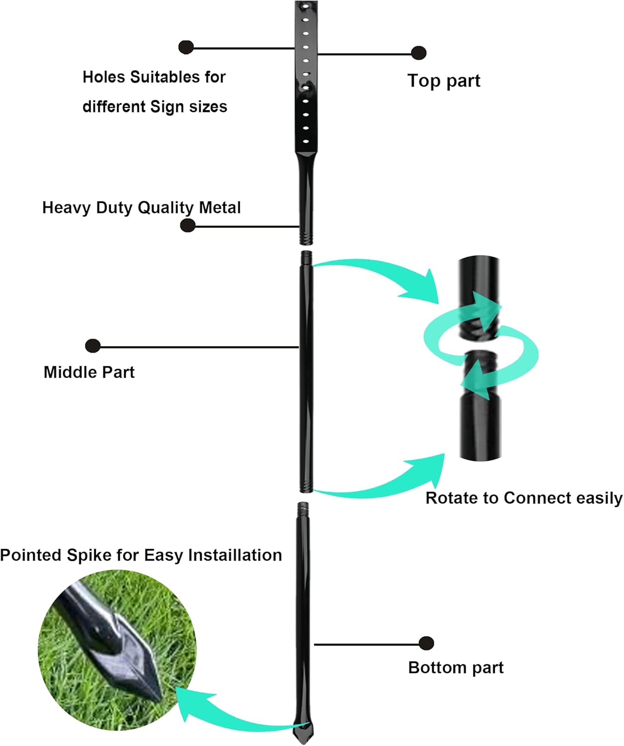 - EASY INSTALLATION: Pre-drilled holes along the stake allow for adjustable sign heights and simple mounting without special tools