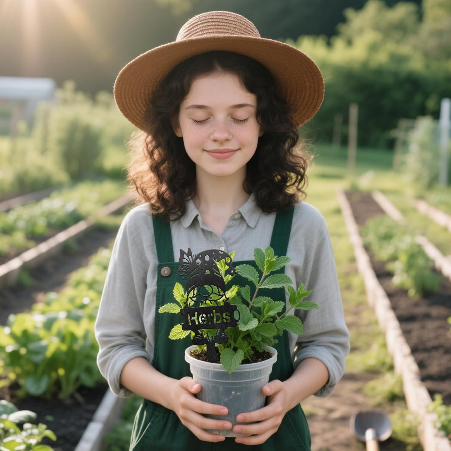 CUTHOLLOW Metal Plant Marker Stake Herbs and Gnome for Outdoor Indoor, Waterproof 11.8 inch Cute Garden Plant Labels Sign Tag for Herb, Farmhouse Greenhouse Decor - Funny Gardening Gifts
