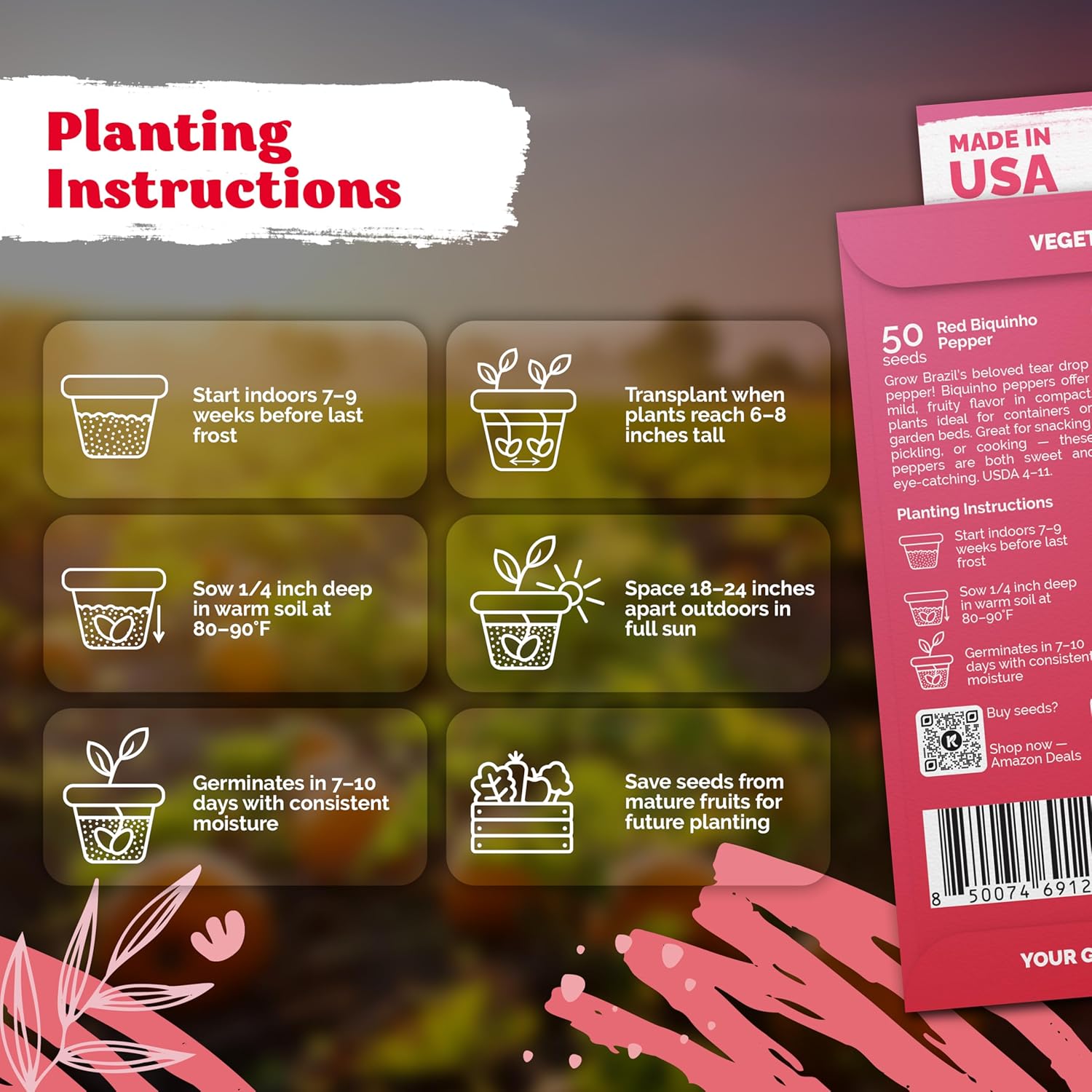 - Fast Maturity: Enjoy fresh teardrop peppers in 90–95 days from transplant. Sow pimenta de bico seeds 1/4 inch deep in well-draining soil indoors, transplant when biquinho pepper plant is 6-8" tall.