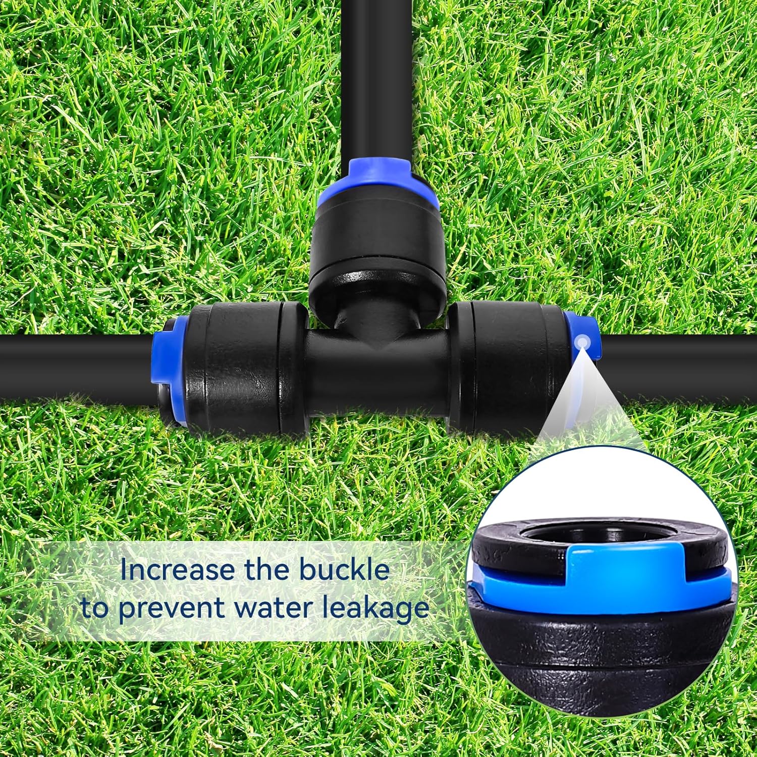 20 Pack 1/4" Drip Irrigation Tee Connectors, Quick Connect Universal Drip Irrigation Tubing Coupling Valve, Connector Locking Fitting for Sprinkler or Drip Irrigation System