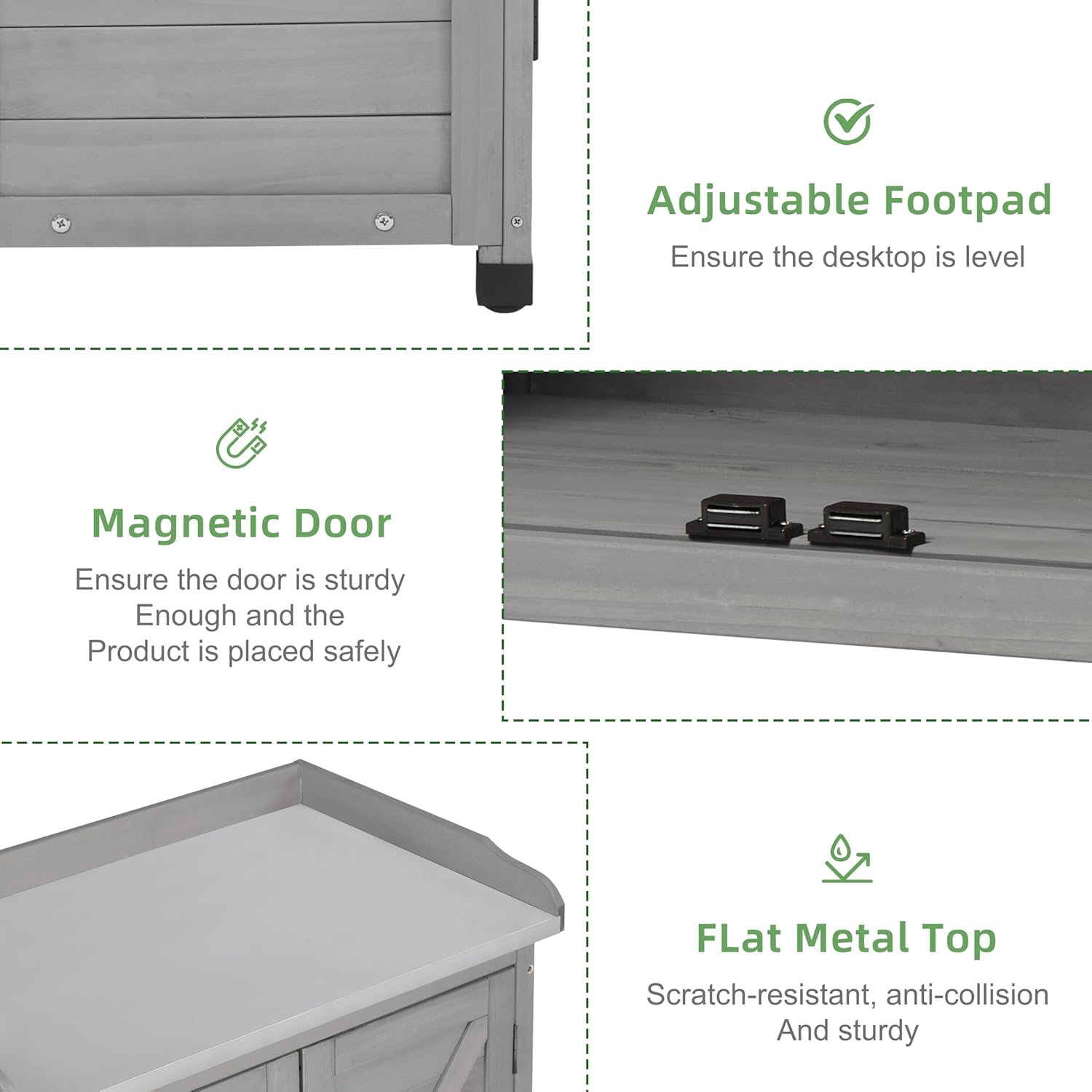 - Premium Wood Material: Our Potting Bench Table storage cabinet, made from premium cedar wood. The water-based coating and gray finish provide a beautiful rustic look and ensure durability for outdoor use.