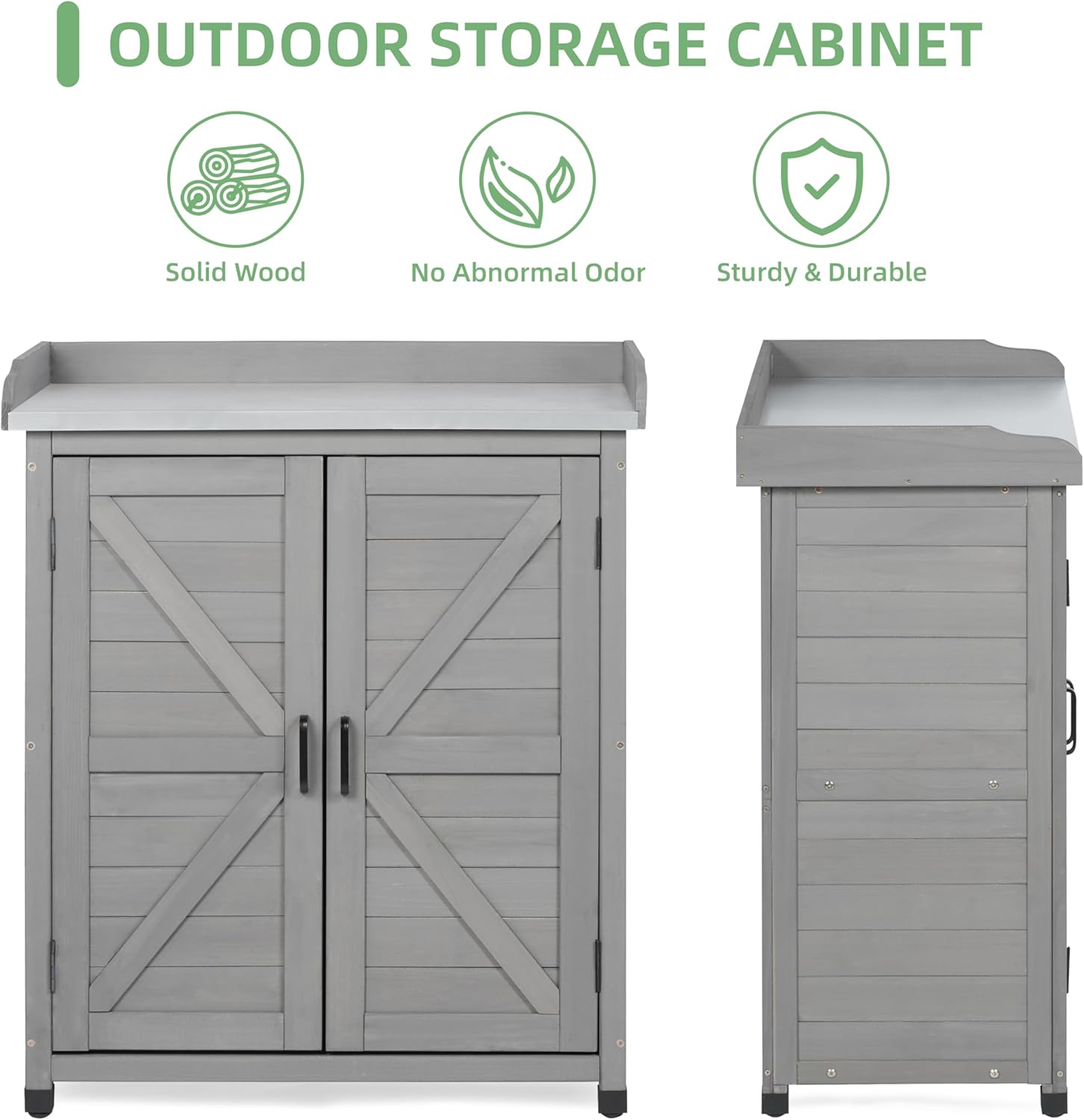 - Versatile Use: Ideal for use as a tool cabinet or a work table. Perfect for yards, patios, balconies, decks, porches, and garages, this versatile table complements various outdoor settings.