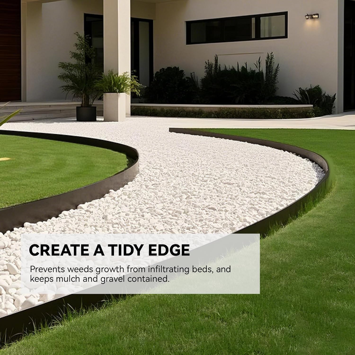- PREMIUM QUALITY MATERIAL: The edge of this landscape edging is made of high-quality galvanized steel, which is durable and long-lasting.It provides a reliable barrier for your garden bed or lawn area.