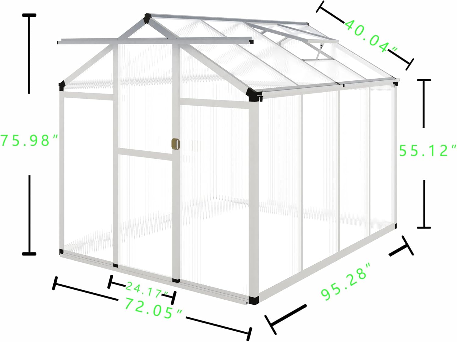 - QUALITY DESIGN: Our greenhouse measures 6x8 ft, with a roof (including gutter) of 6.2x8 ft, providing a coverage area of 48 sq ft and weighing 57.86 lbs. Very easy to access with its Sliding door. Seal it off completely when not in use. Designed for indoor or outdoor use. Very easy to install with simple instructions. Innovative and flexible, install it in your garden, patio, deck, or yard.The color is Silver.