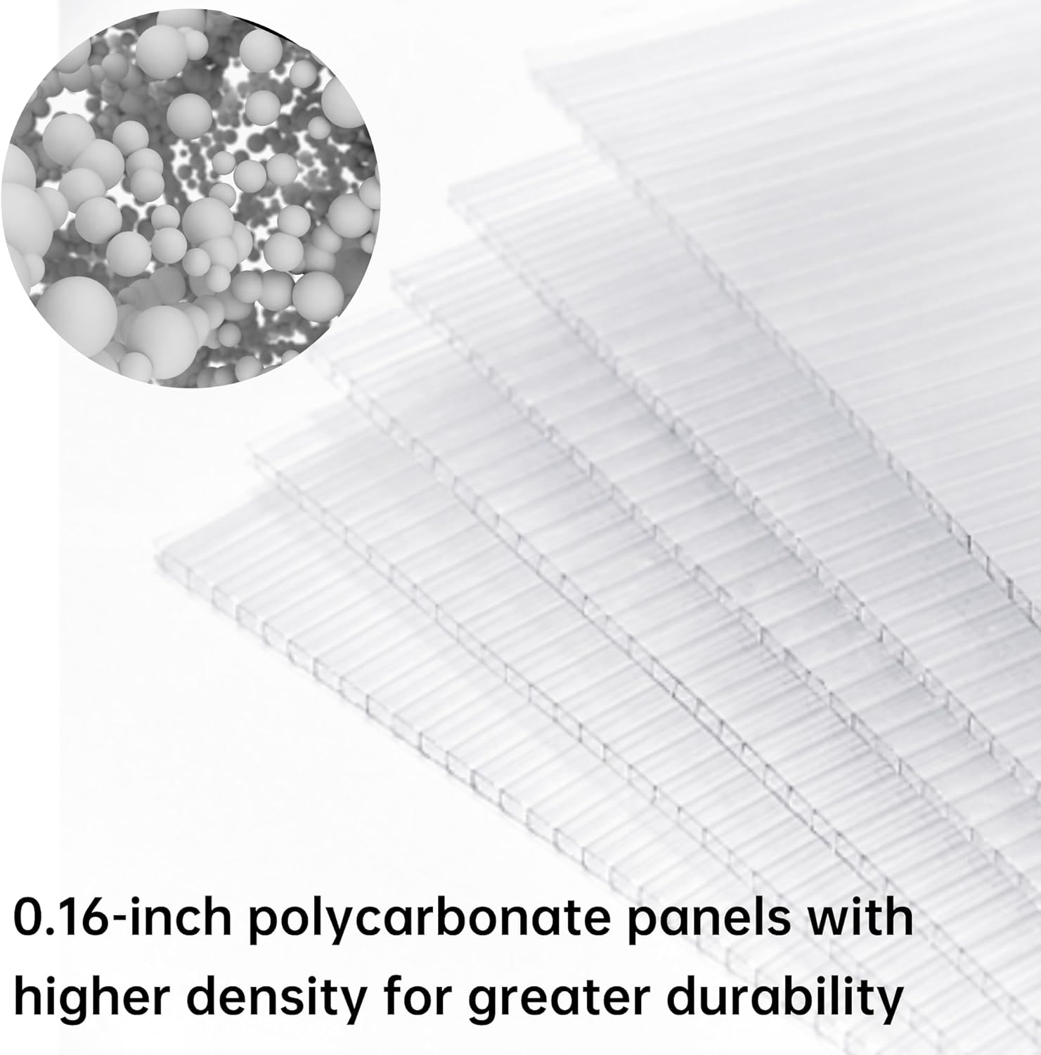 - EASY INSTALLATION: Each of the two packages contains an aluminum alloy frame and PC panels, complete with detailed installation instructions. The greenhouse's frame allows for easy assembly, enabling two DIY enthusiasts to complete the setup in just 3 hours