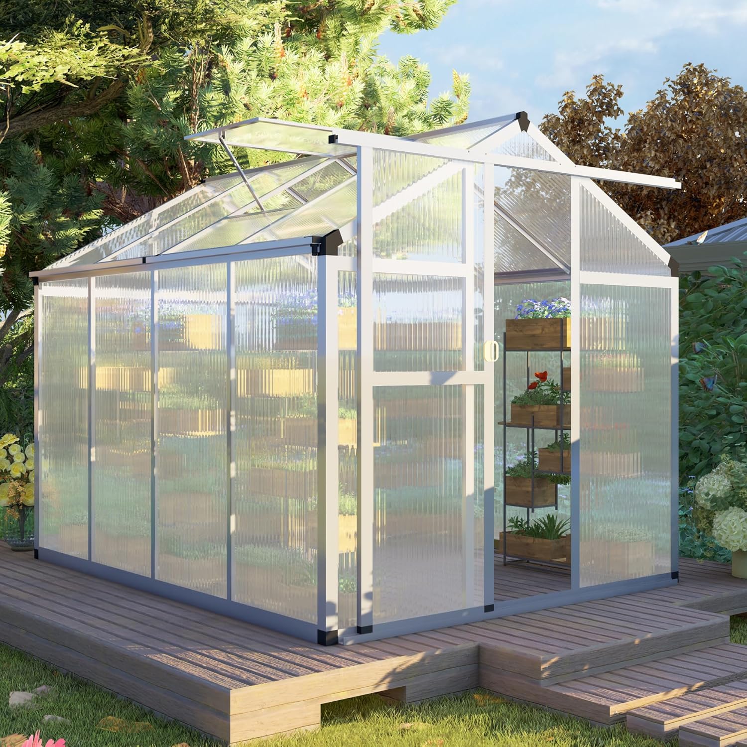 CQZY 6x8 FT Greenhouse for Outdoors,Walk-in Greenhouse for Outside,Silver