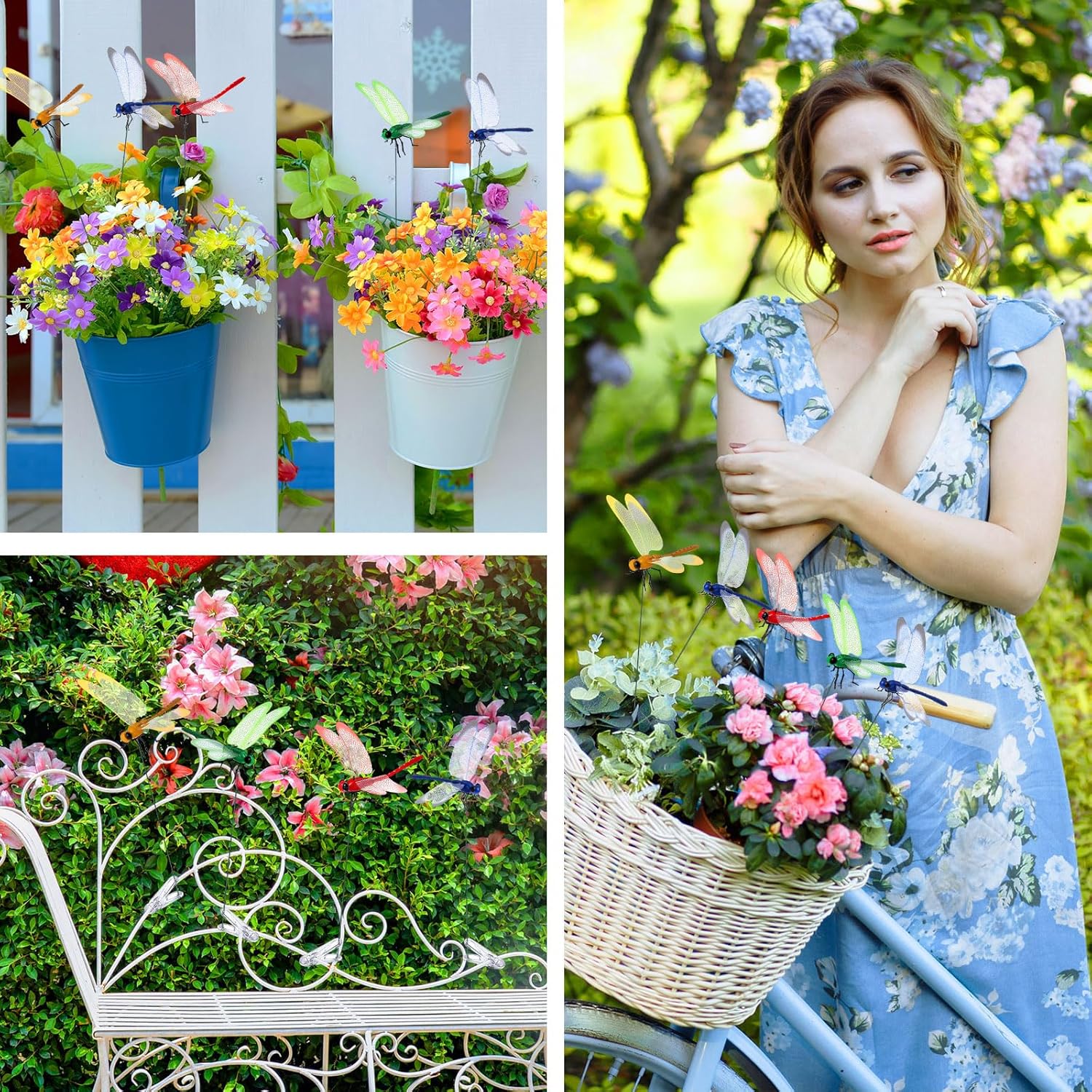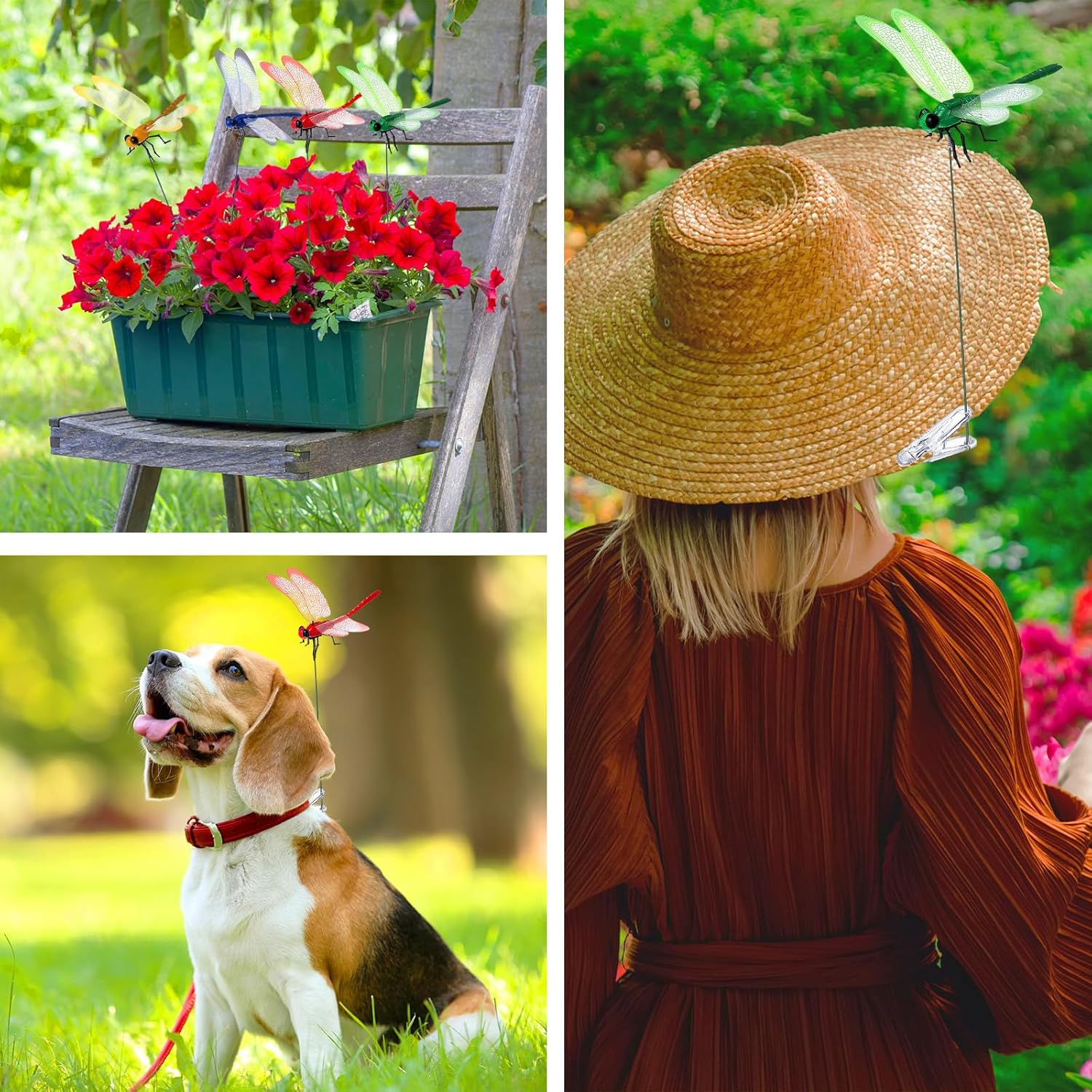 - Vibrant Garden Accents: transform gardens, courtyards, patios, and flower beds with these lifelike 3D dragonfly hat clips; They add vitality and charm to plants and flowers, enhancing your decor with ease