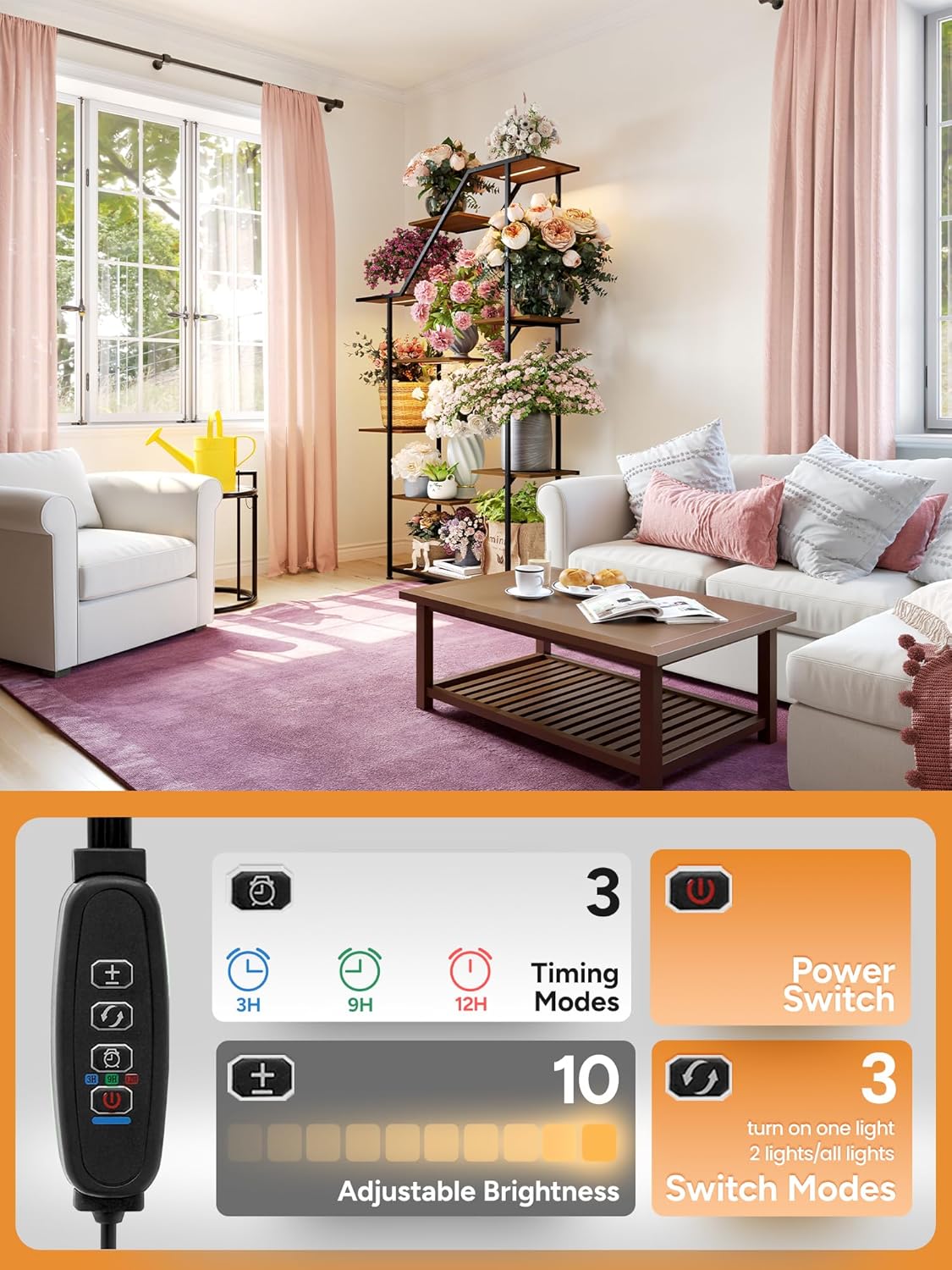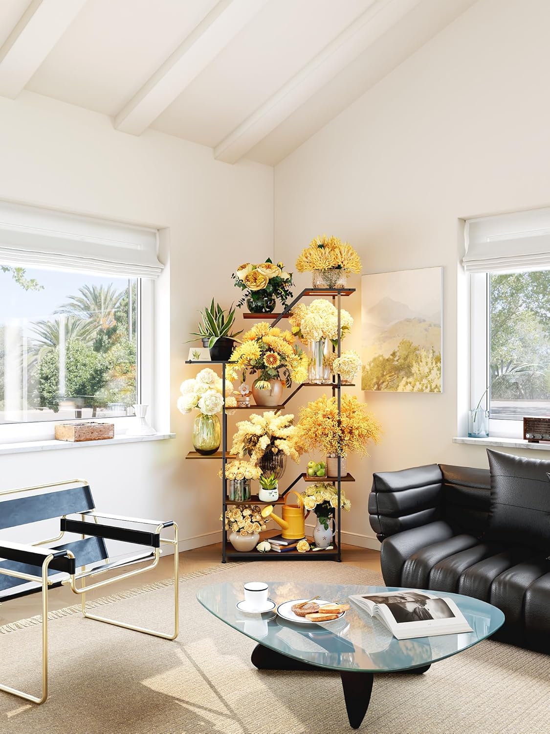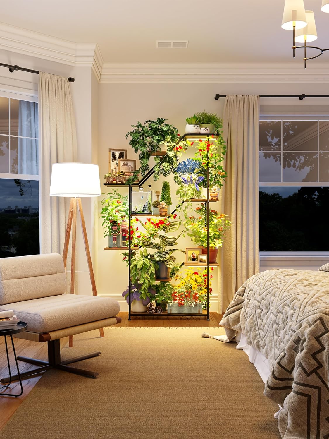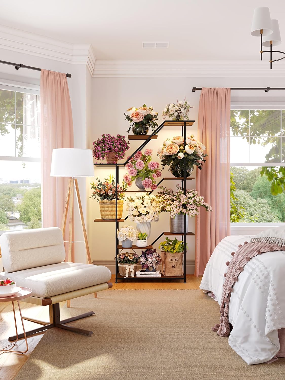 - Tall Multi-Tier Vertical Rack: With seven vertical levels, this plant stand transforms narrow corners into lush indoor gardens. It’s ideal for apartments, bedrooms, or living rooms where floor space is limited but greenery is welcome.