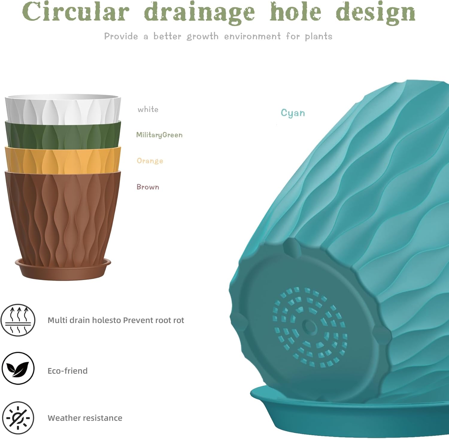 7 Inch Plant Pots 5 Pack, Flower Planters with Drainage Holes and Trays,Plastic Pots for Indoor Outdoor Plants,Multicolor
