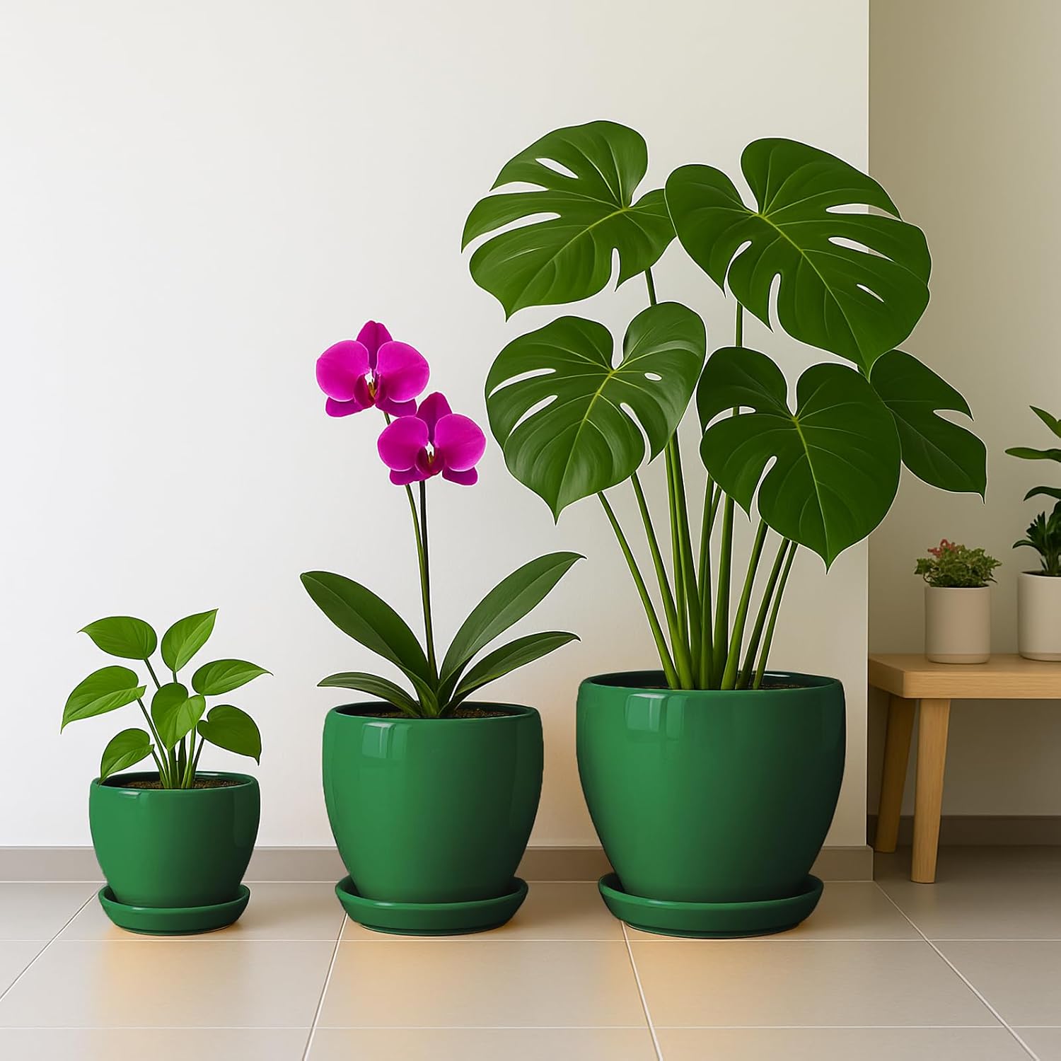 - Widely Used: This ceramic pots for plants with trays suitable for succulent, bonsai, herb, cactus, orchid, aloe vera, snake plant, money tree, and is a nice gift for plant lovers, family and friend