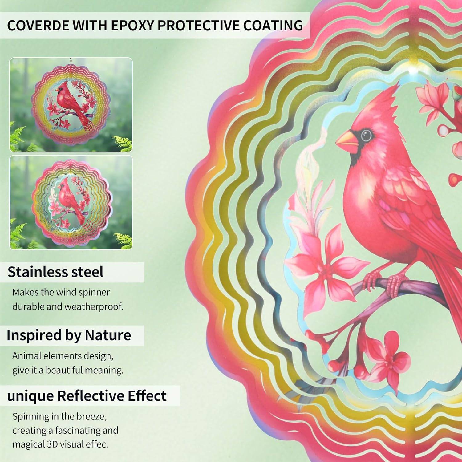 - Captivating Magical 3D Visual Effect - Cawalap Cardinal Bird Wind Spinner surface of the metal wind spinner is additionally coated with a unique layer of colorful reflective material, when the breeze blows, the reflective colorful glitter material gives off a sparkling, creating a fascinating and magical 3D visual effect, its beautiful light reflecting and attractive view, for balcony, garden, patio, porch, backyard, courtyard, both indoor and outdoor will beautify decor your home.