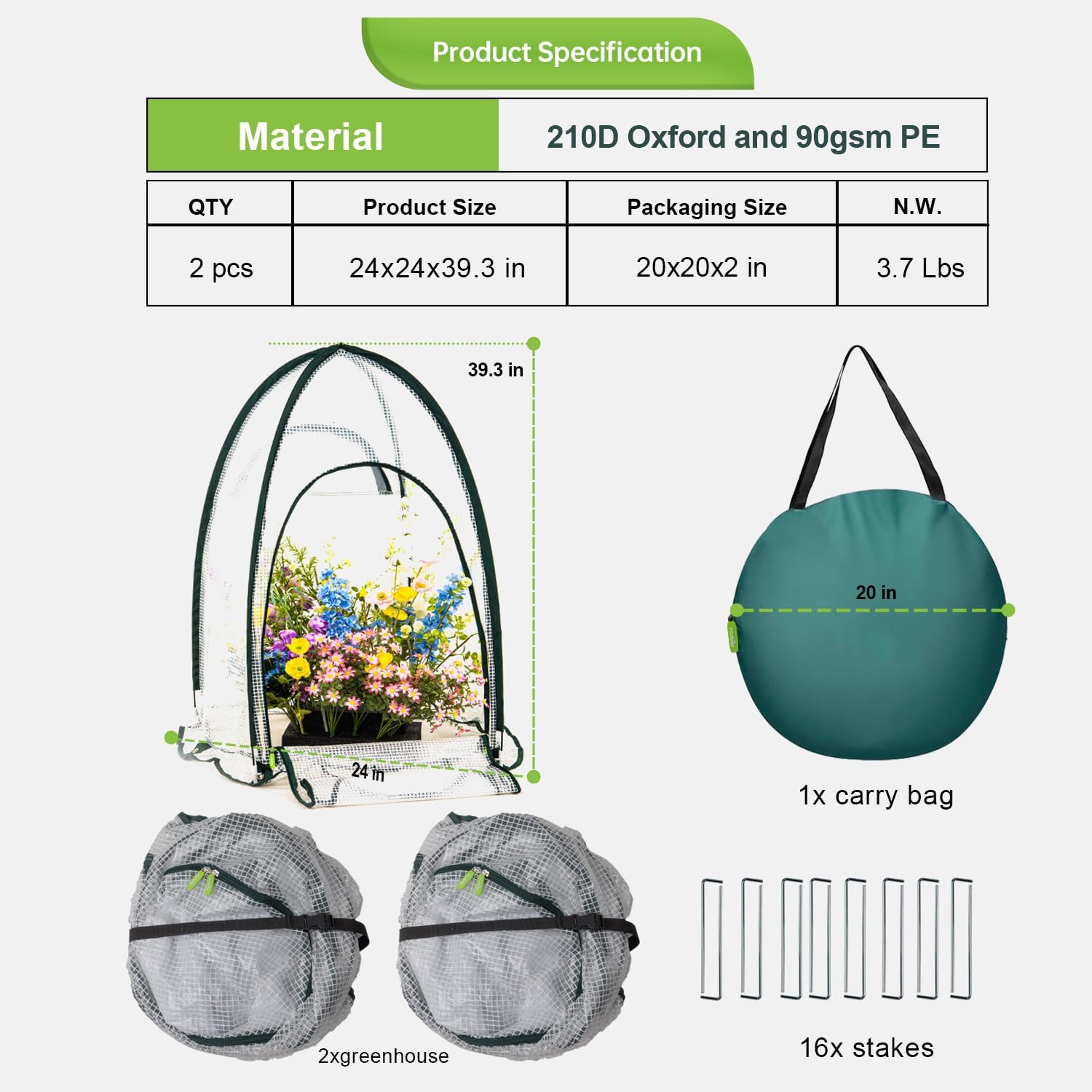 - HUMANIZED DESIGN -The pop-up greenhouse is very easy set up featuring humanized design with 4 large zip-able front/back roll-up doors. It includes 2 mesh windows with PE/mesh fabric for better ventilation, 2 fiberglass poles and triangle imitation roof design preventing rain/snow buildup