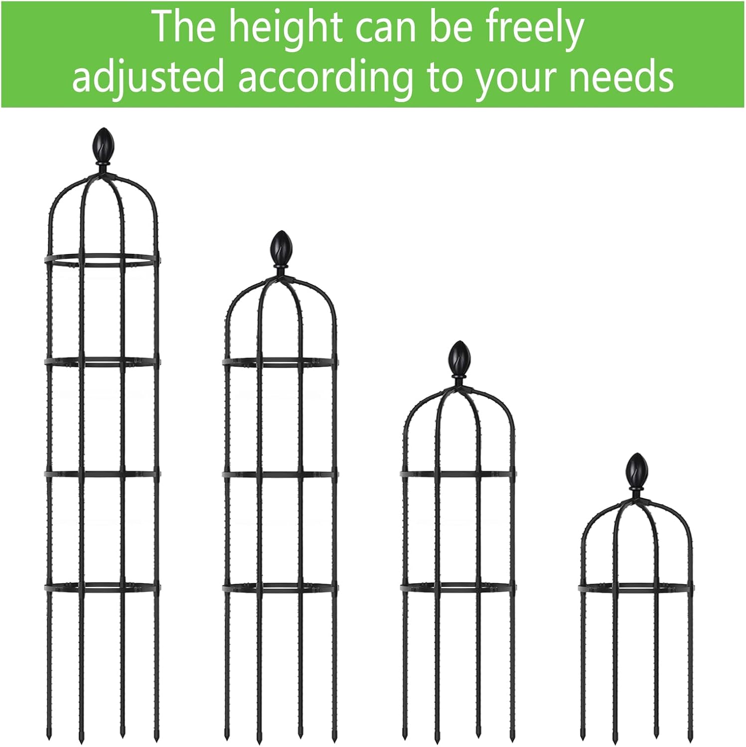- Package Contains: 2 Pack 69” Tall Garden Obelisk Trellis with 4 adjustable durable plastic support rings, come with extra 1 plant ties and 1 trowel garden tool for climbing Plants.