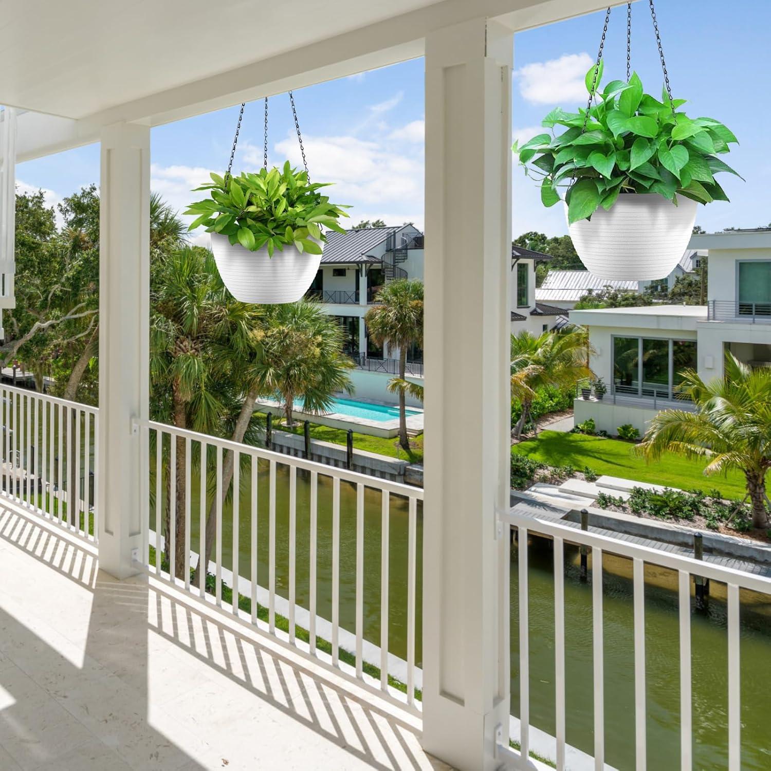 Hanging Planters for Indoor Outdoor Plants, Set of 2 Self Watering Hanging Pots with Drainage Hole & Plug and 20" Chain & Hooks
