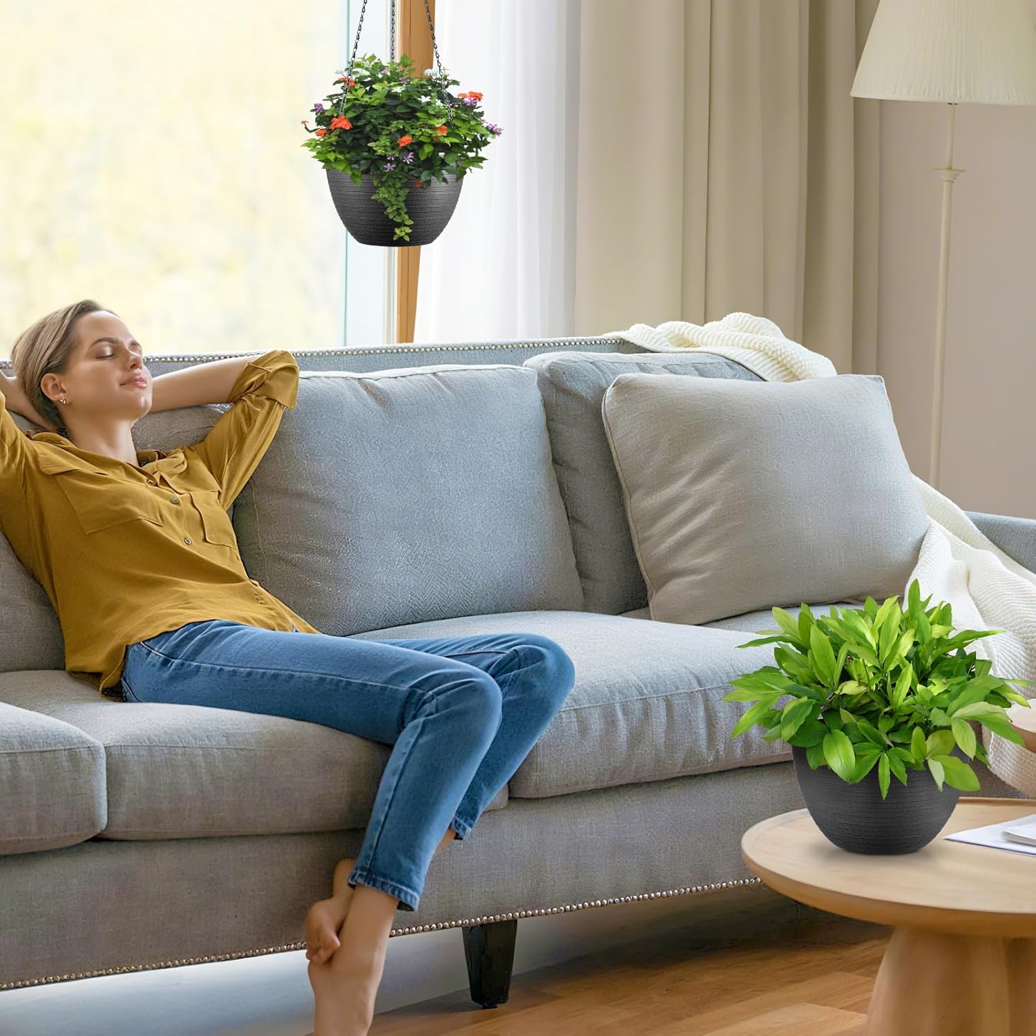 Hanging Planters for Indoor Outdoor Plants, Set of 2 Self Watering Hanging Pots with Drainage Hole & Plug and 20" Chain & Hooks