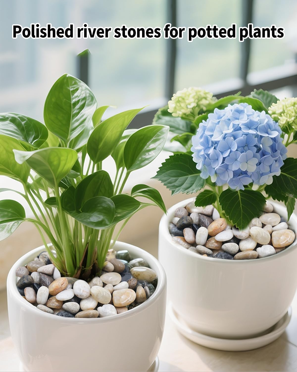 - 6 LB Natural Polished River Rocks (5/16"-5/8"):Includes approx 300 smooth, rounded stones perfect for decorative landscaping, plant pots, and DIY projects. Uniform size ensures consistent coverage for gardens, walkways, and indoor decor
